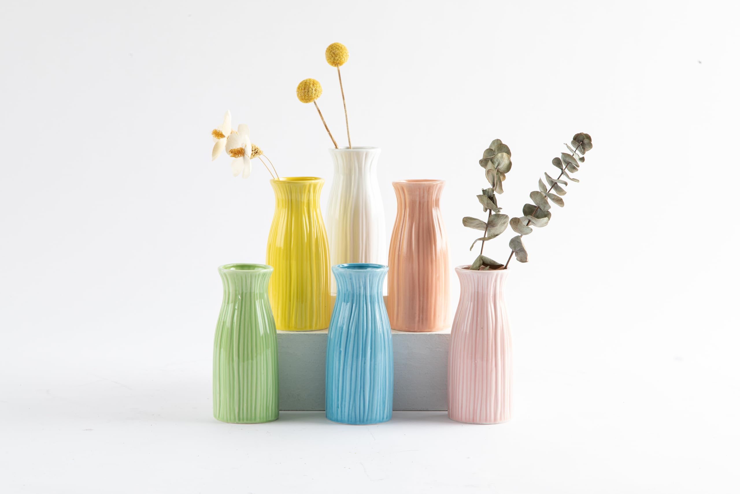 Juego de jarrones de cerámica de 6 piezas, floreros de flores de colores y lisos, puede crear varios estilos decorativos, adecuado
