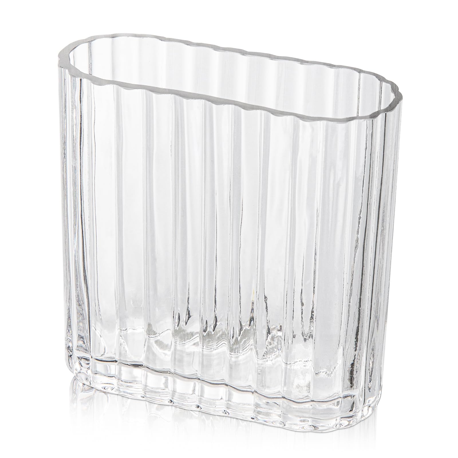 Florero de cristal transparente de 5.5 pulgadas acanalado para flores, jarrón acanalado único para centro de mesa, jarrón decorati