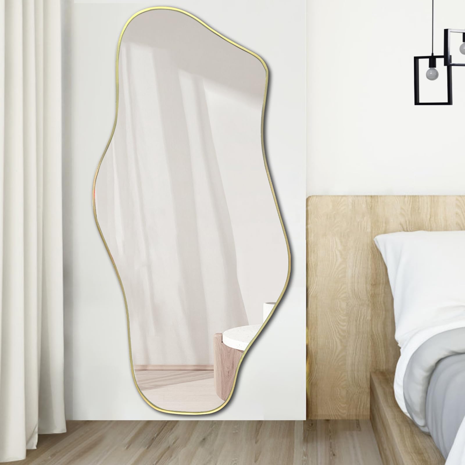 Espejo irregular – Espejos dorados de longitud completa decorativos de 59 x 25.5 pulgadas, grandes espejos asimétricos en forma de