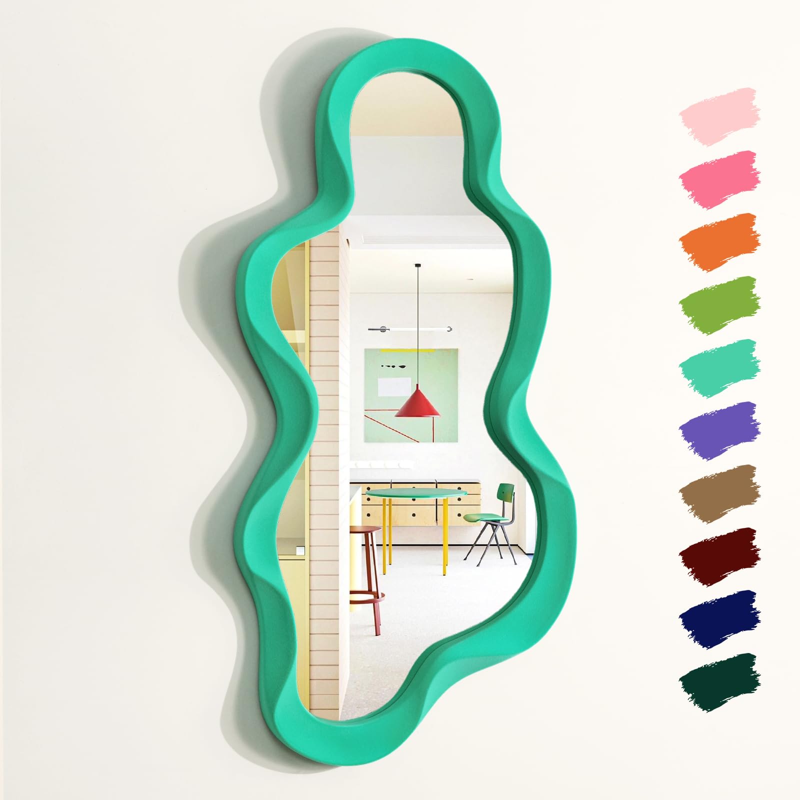 Espejo de pared irregular, espejo de pared enmarcado de madera, espejo de pared ondulado asimétrico para sala de estar, dormitorio