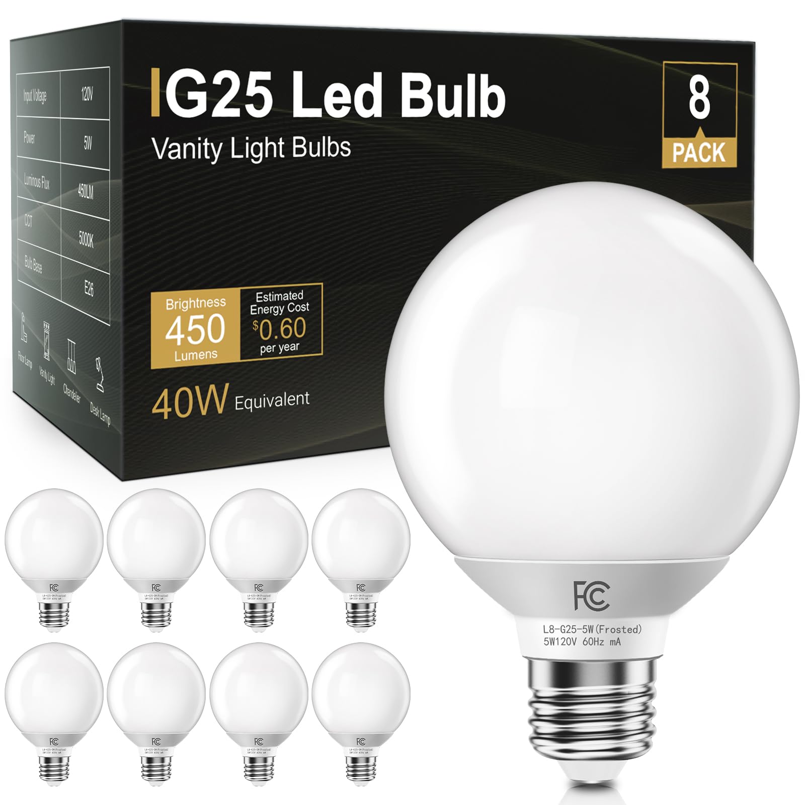 TJOY Bombillas LED G25, bombilla de tocador para baño, equivalente a 40 W, base E26 blanca de luz diurna de 5000 K, bombilla decor