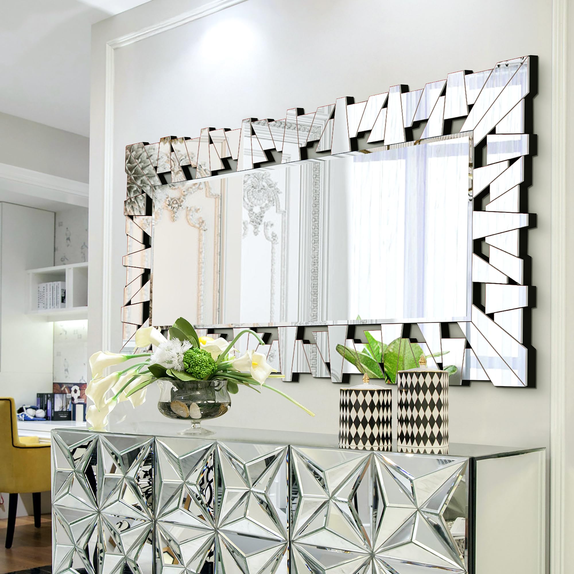 Espejo decorativo de 35 x 24 pulgadas, hermoso espejo plateado para pared, dormitorio, baño, sala de estar y comedor