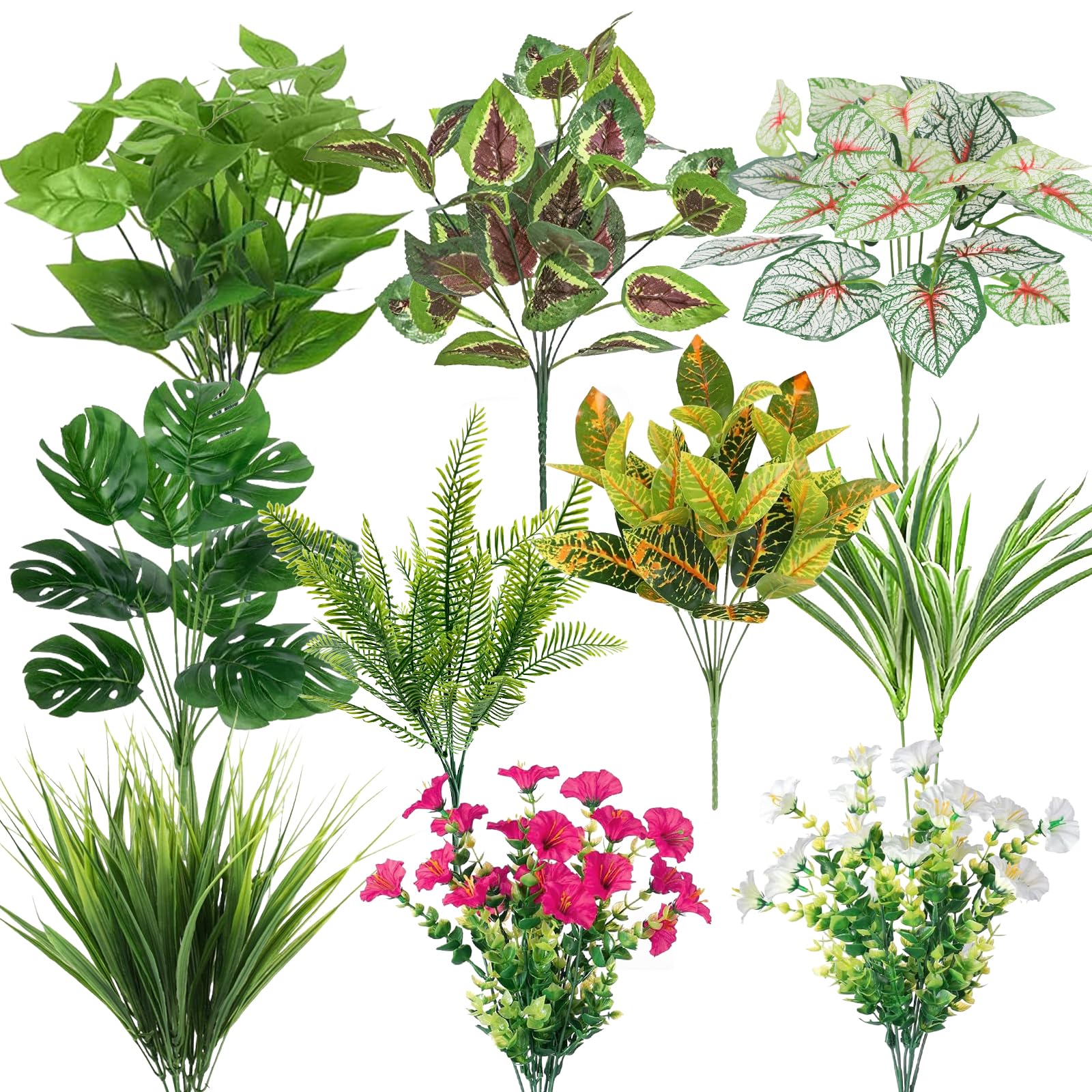 19 plantas artificiales para exteriores, resistentes a los rayos UV, tallos y flores de imitación realistas, arbustos falsos para