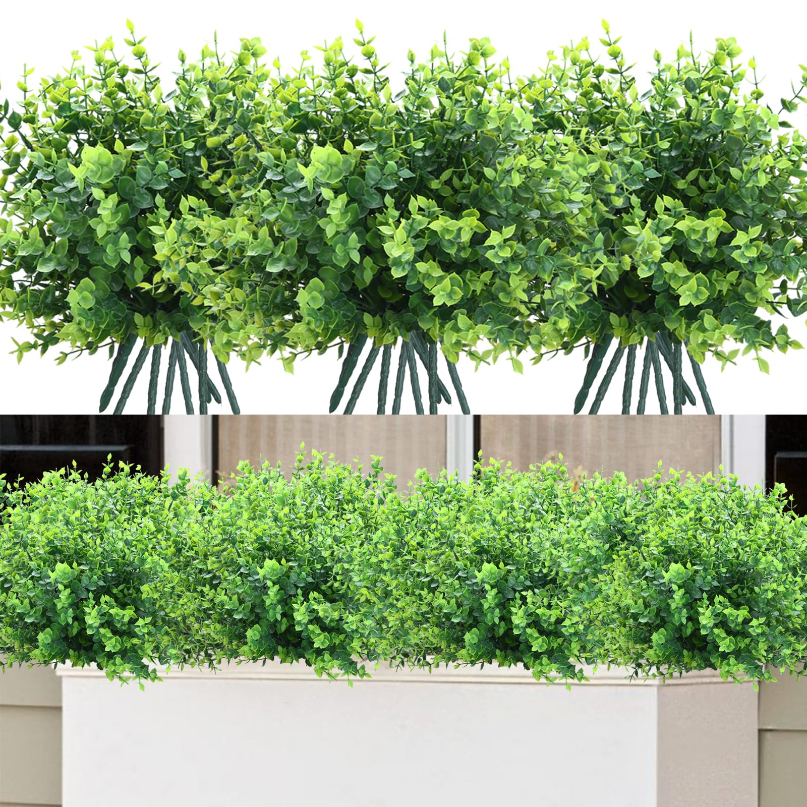 summer flower Paquete de 10 tallos de boj falsos, plantas artificiales de eucalipto para exteriores, no se decoloran, plantas de b