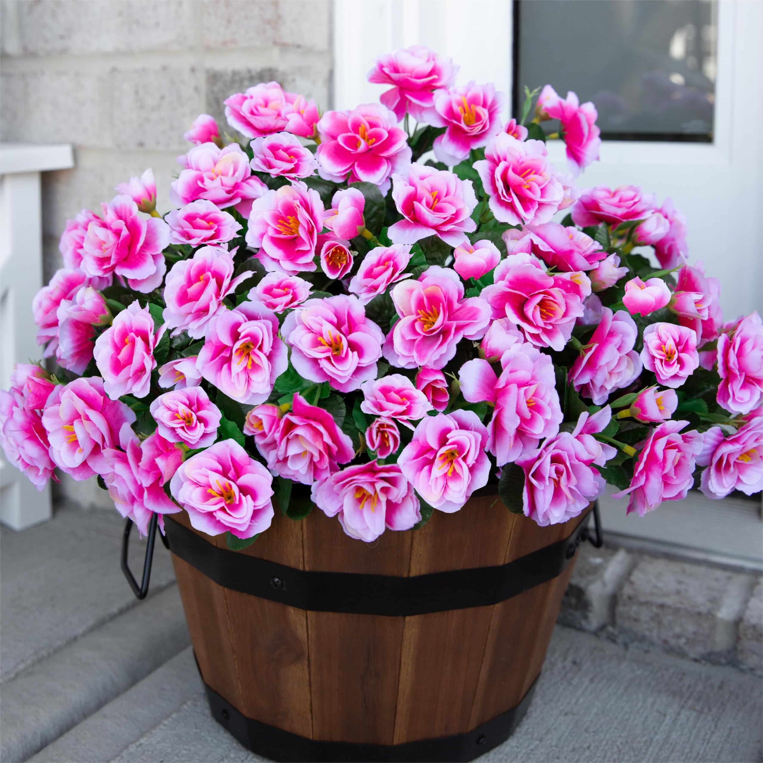 Ivydale Plantas artificiales de flores artificiales para exteriores, seda sintética, camelia, rosa, resistente a los rayos UV, rea