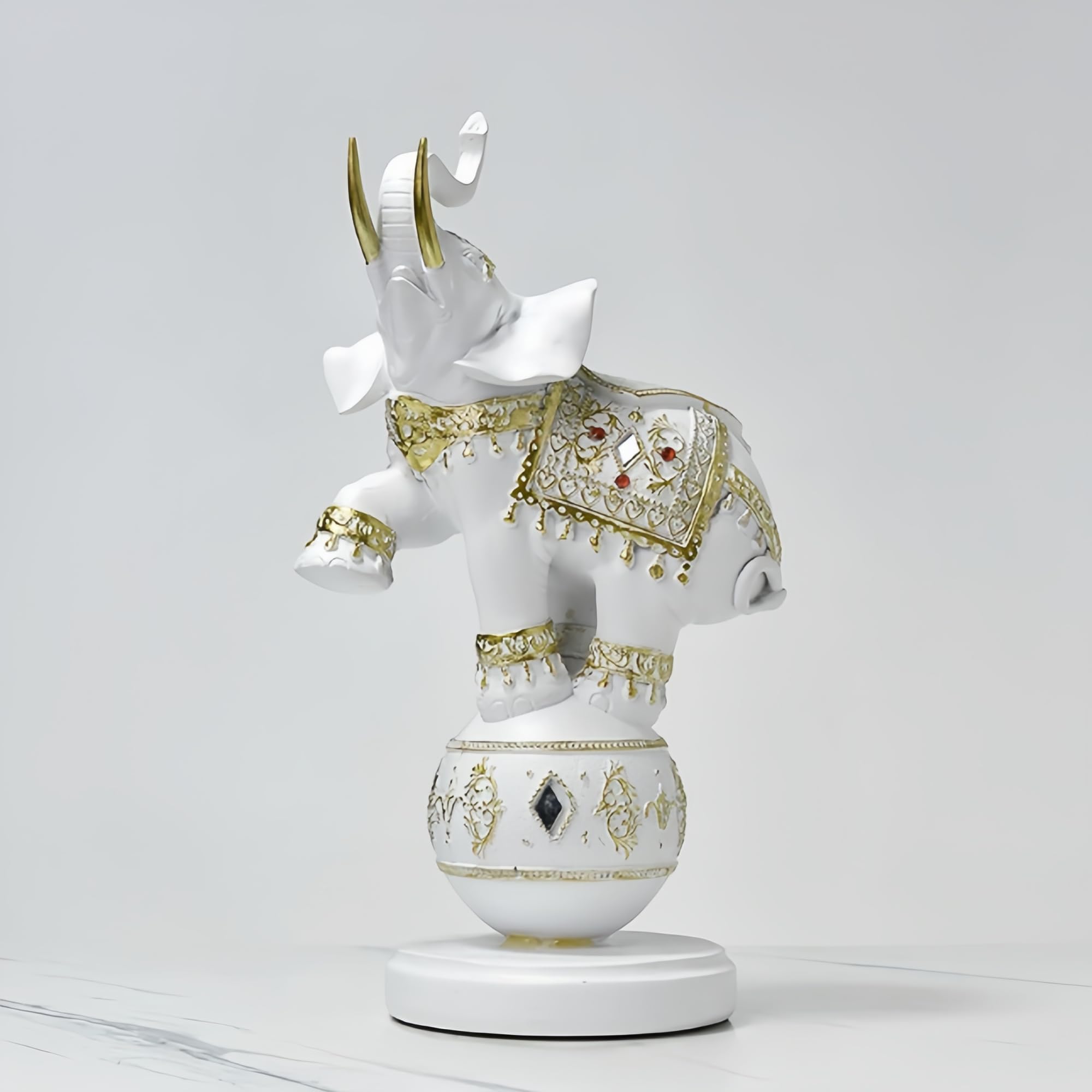 Estatua – El elefante está de pie en la bola – tres colores (blanco)