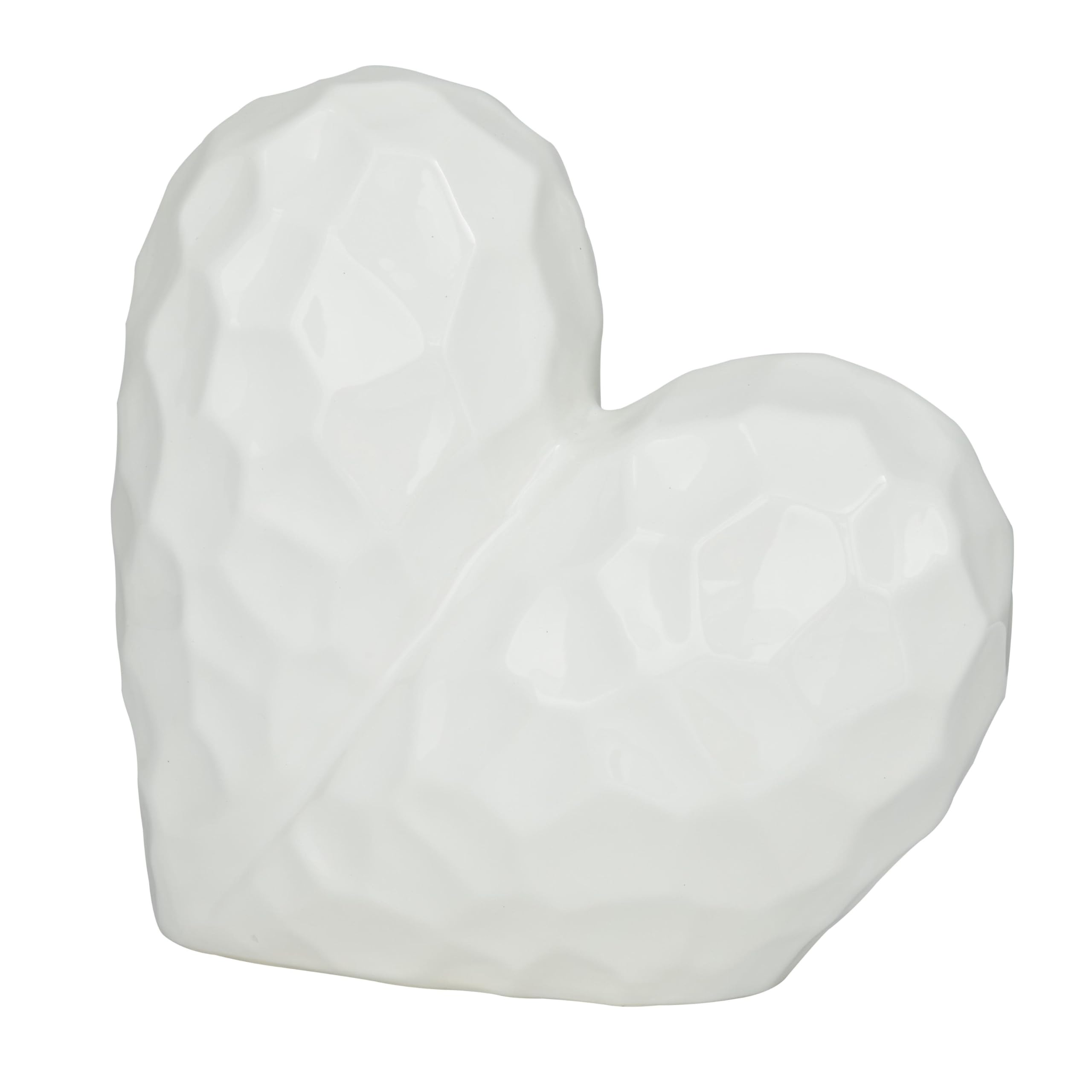 Deco 79 Escultura decorativa de corazón de cerámica de porcelana con diseño de origami en ángulo dimensional, estatua de decoració