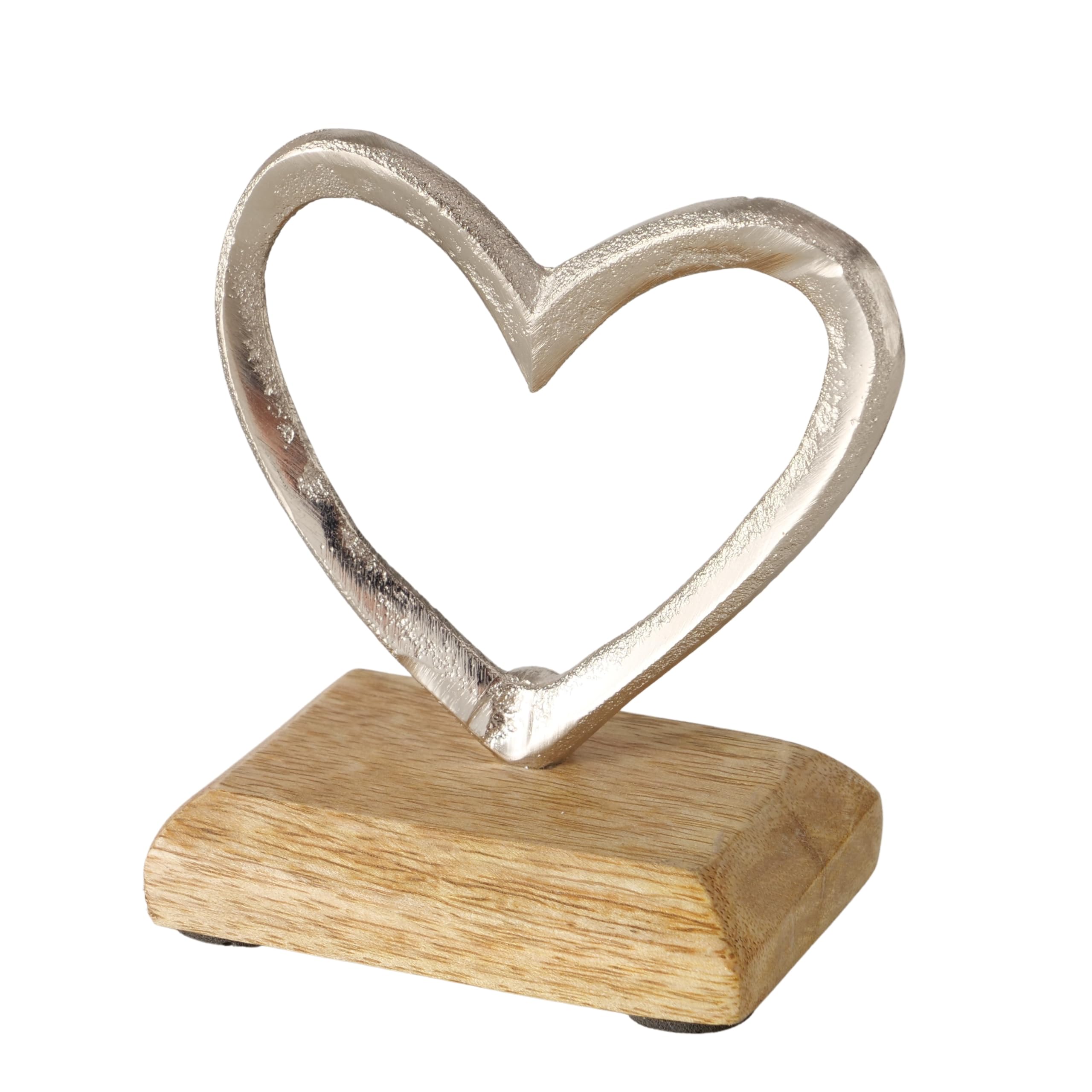 WHW Whole House Worlds Escultura de corazón de eternidad, arte moderno, aluminio fundido a mano, base de galería de madera de mang