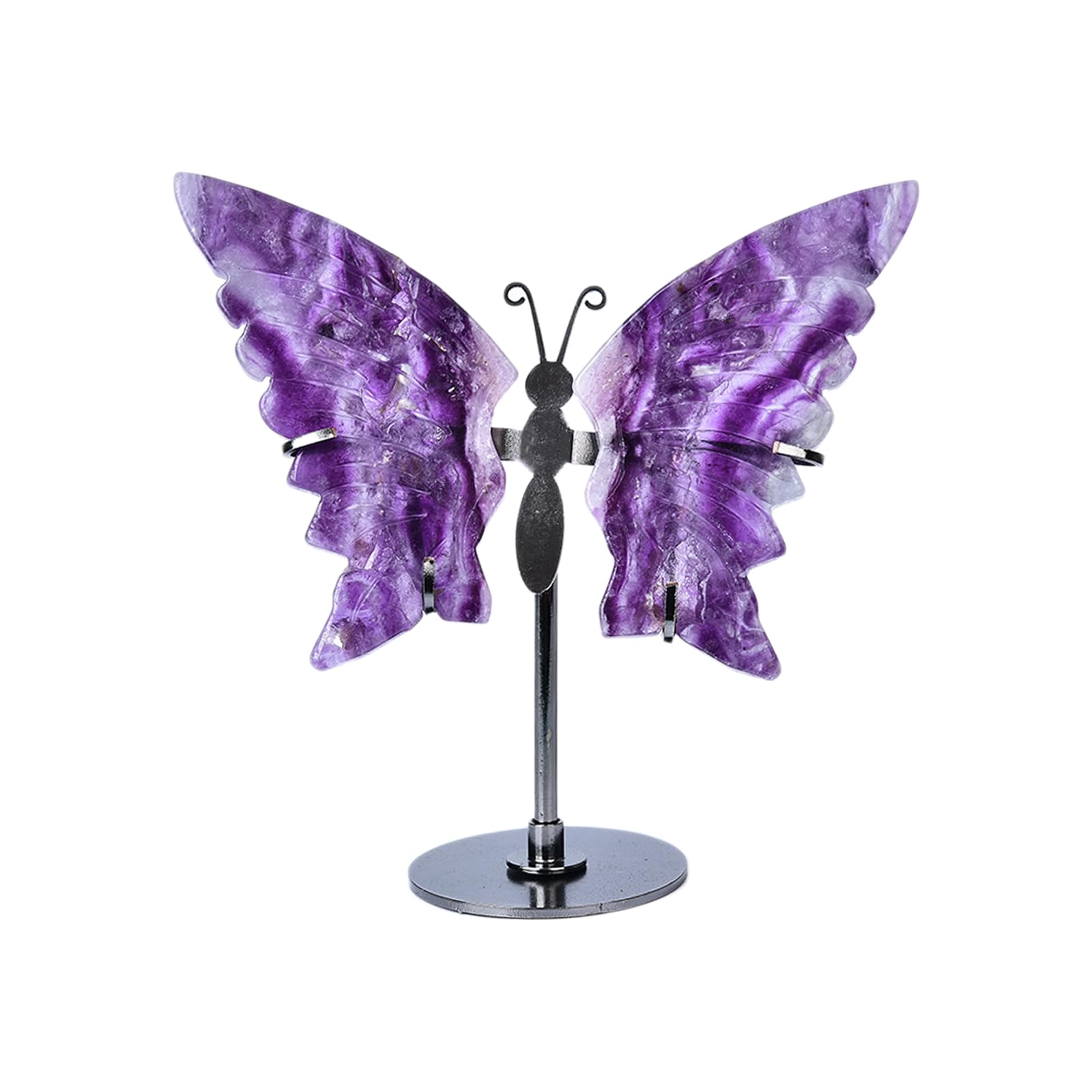 JIC Gem Cristales y piedras de fluorita morada, arte de mariposa, alas de ángel, escultura, tallado, adornos de cristal curativo,