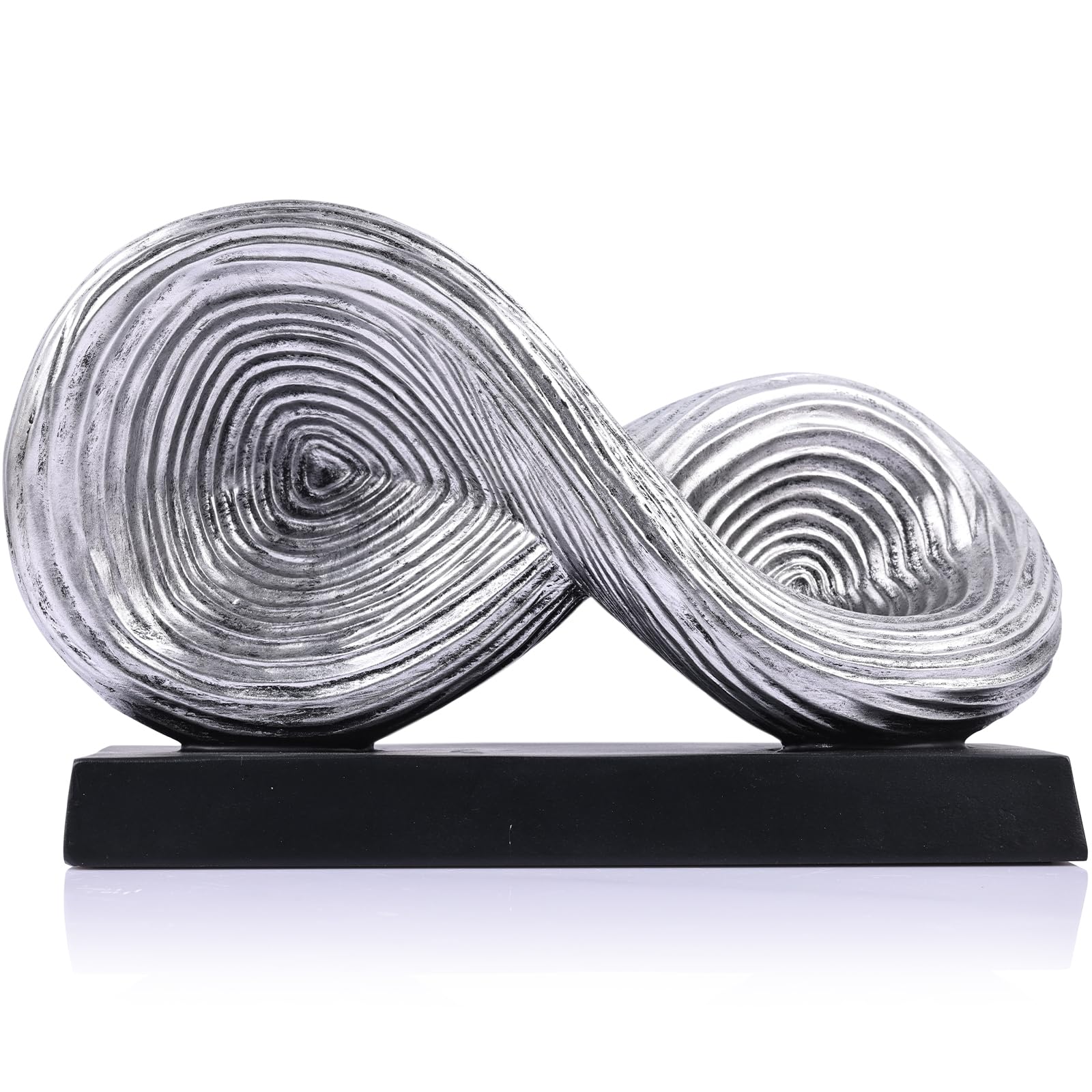 QIANLING Escultura de arte abstracto, escultura de símbolo de bucle infinito, estatua decorativa abstracta, nudo plateado para dec