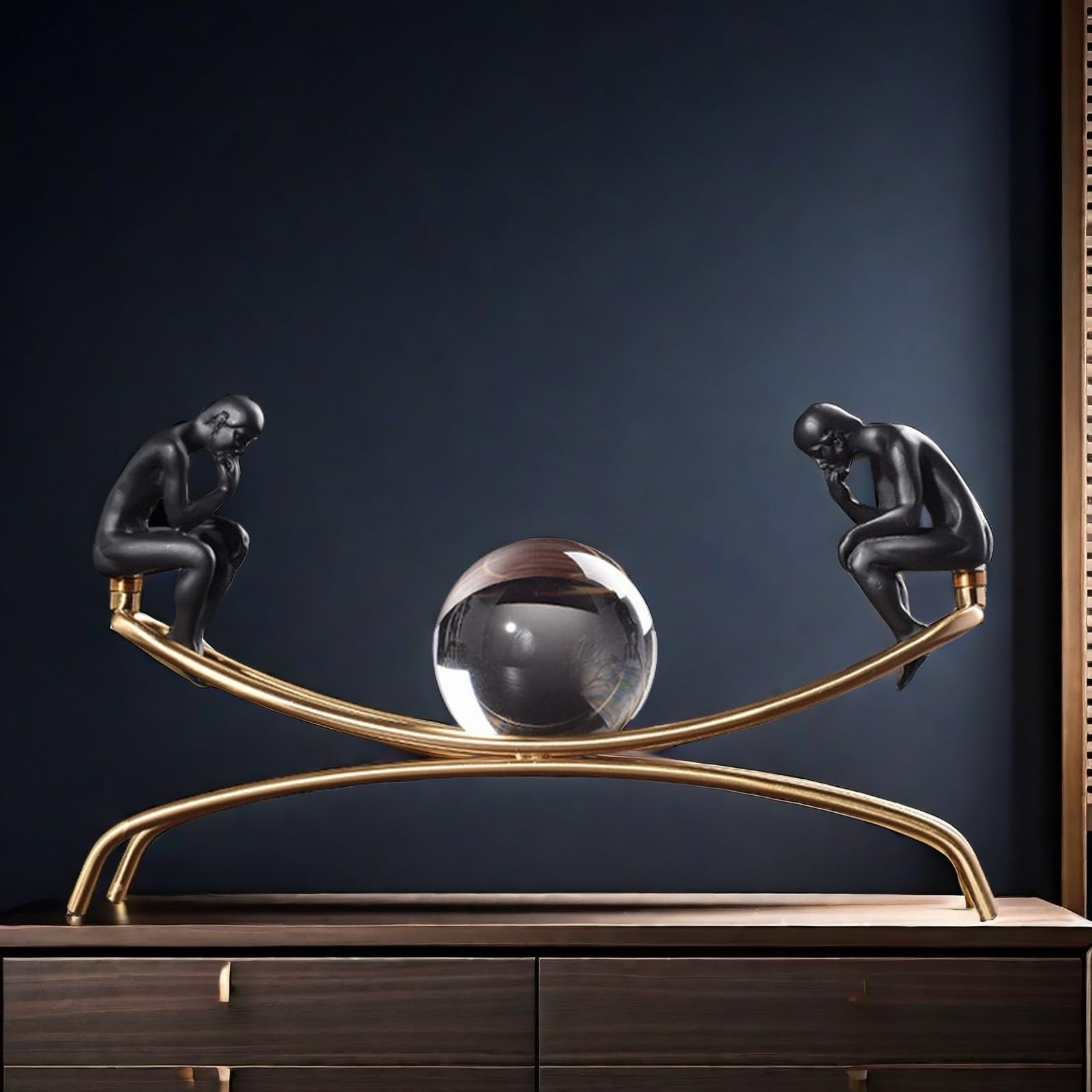 Estatua de The Thinker Thinking Man con bola de cristal, decoración de escritorio para oficina en casa, sala de estar, escritorio