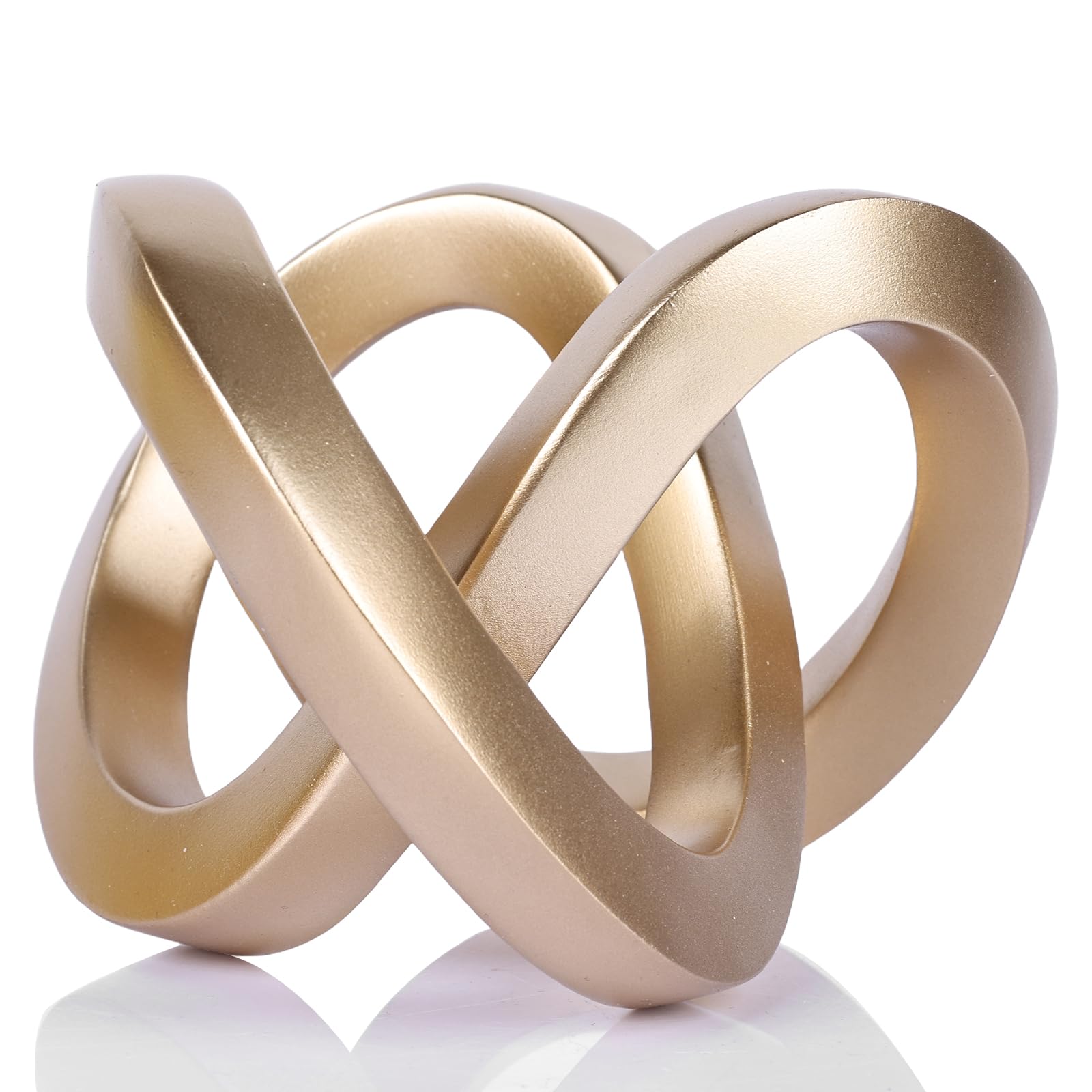 DOVDOV Escultura decorativa de nudo dorado, estética de decoración de habitación dorada, estatua de anillo Mobius para estantes, s