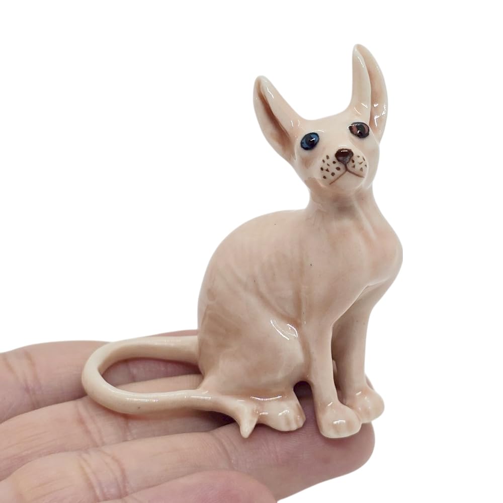 ChangThai Design Tiny 2½” Pink Sit Sphynx Hairless Cat – Miniature Hand Made Ceramic Cats Kittens Kitty Feline Animals Cute Porcel