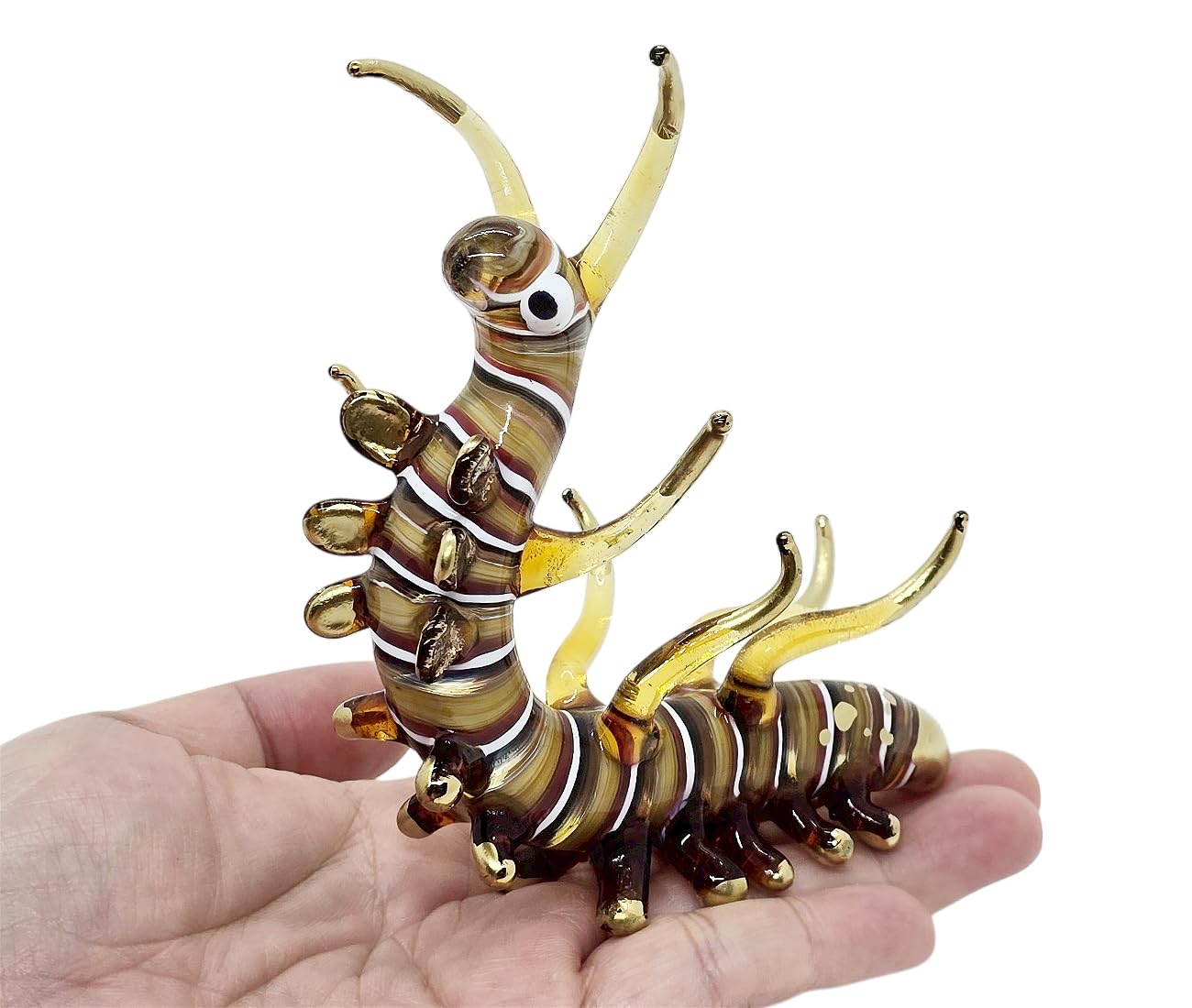 WitnyStore Tiny 4½” Brown Worm Caterpillars Insect Larvae Figurine – Miniature Hand Blown Glass Insects Bug Arthropodal Animal Col