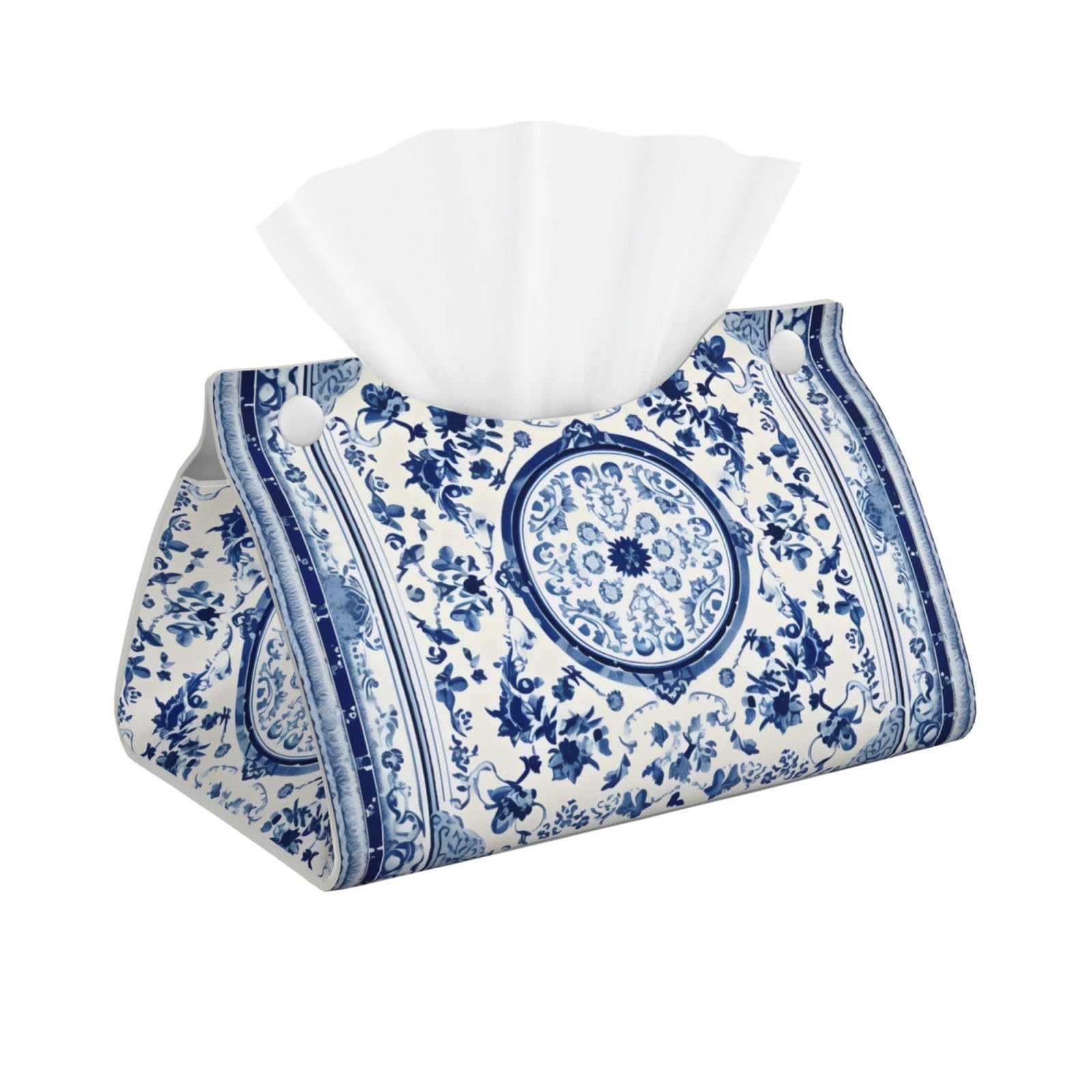 Funda de piel para caja de pañuelos de papel para caja de pañuelos azul y blanco, funda de tejido decorativa para el hogar, oficin