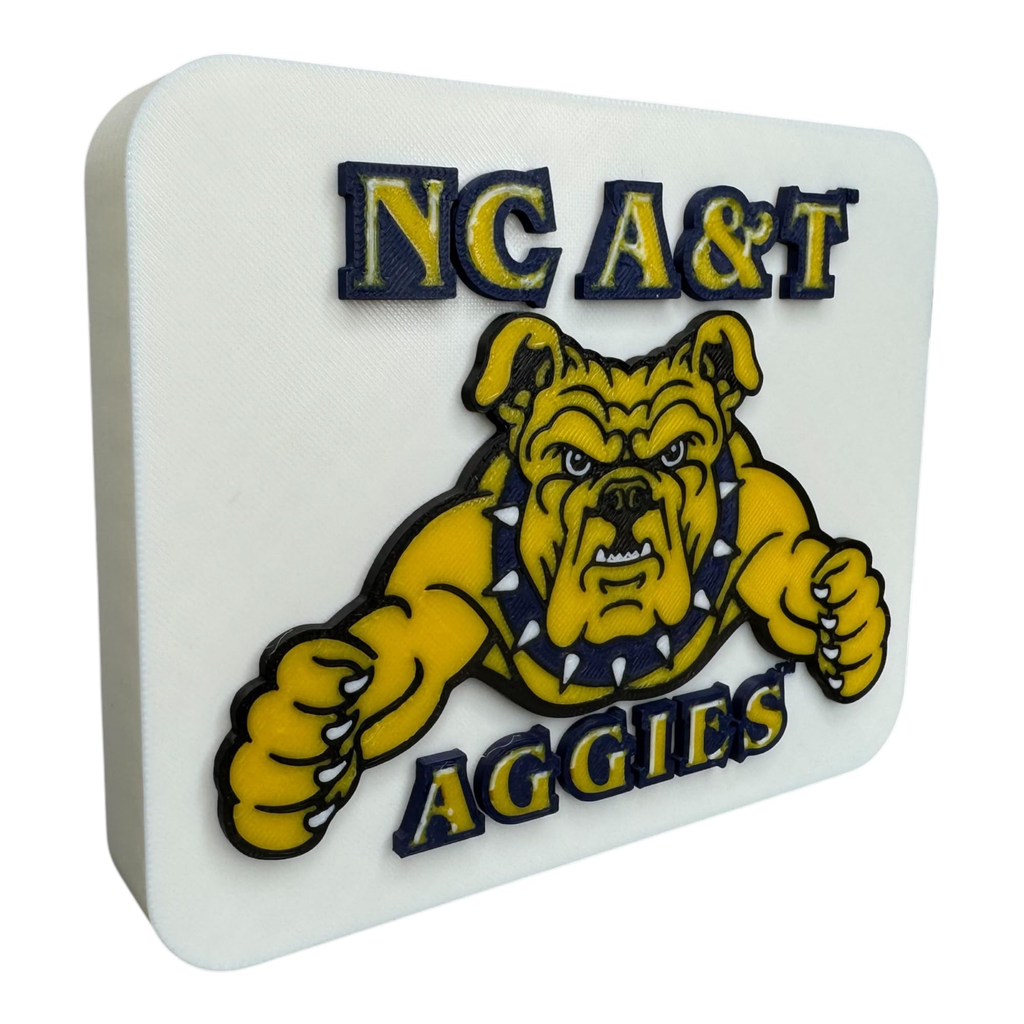 Logotipo decorativo impreso en 3D de NC A&T, figura de exhibición independiente, azul marino/dorado/blanco, decoración para fanáti