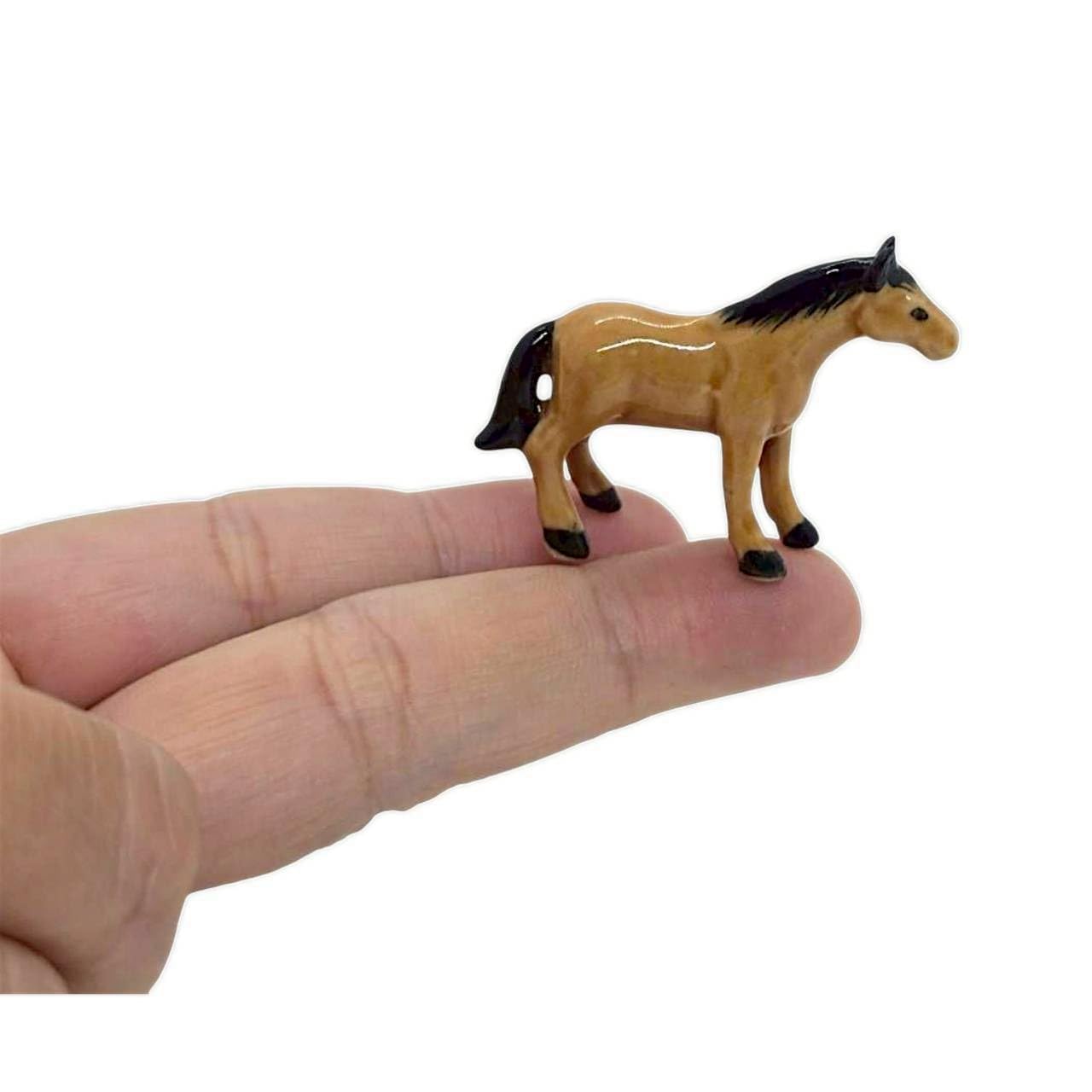 WitnyStore Pequeña figura de caballo de pie blanco y negro de 1.0 pulgadas de alto, hecha a mano, caballos de cerámica, semental,