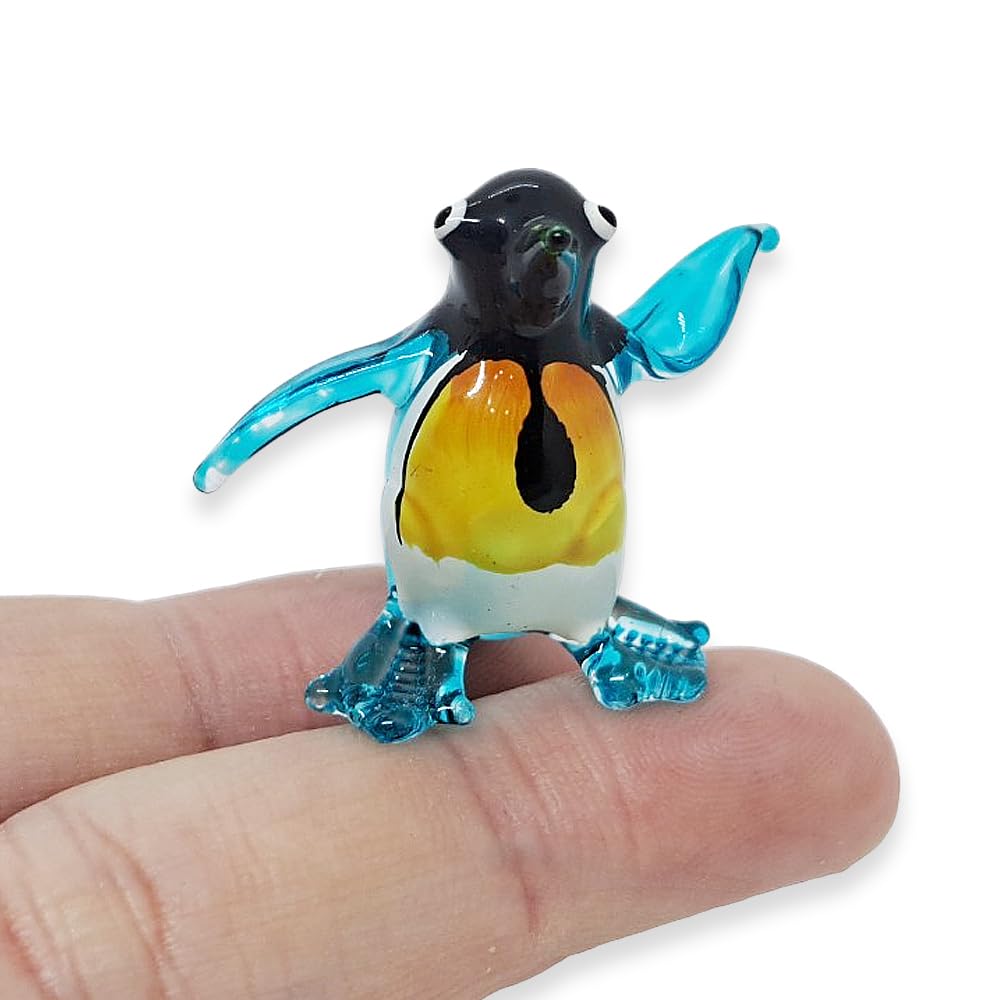 ChangThai Design Pequeña figura de pingüino de alas azules de 1¼ pulgadas, miniatura de vidrio soplado a mano antártico, pájaros n