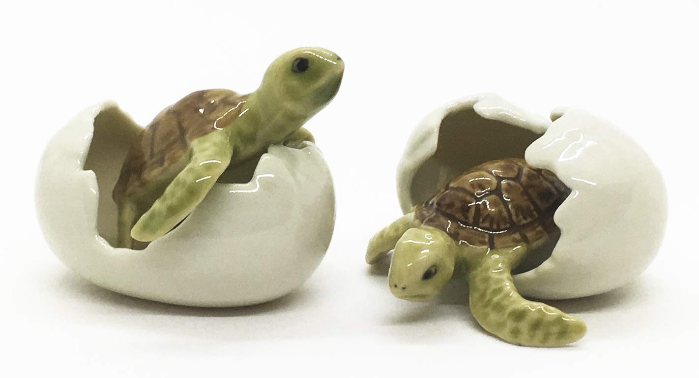 WitnyStore Juego de 2 figuras pequeñas de tortuga de bebé en huevo de cría de 1.0 pulgadas, 2 poses, tortugas de cerámica hechas a