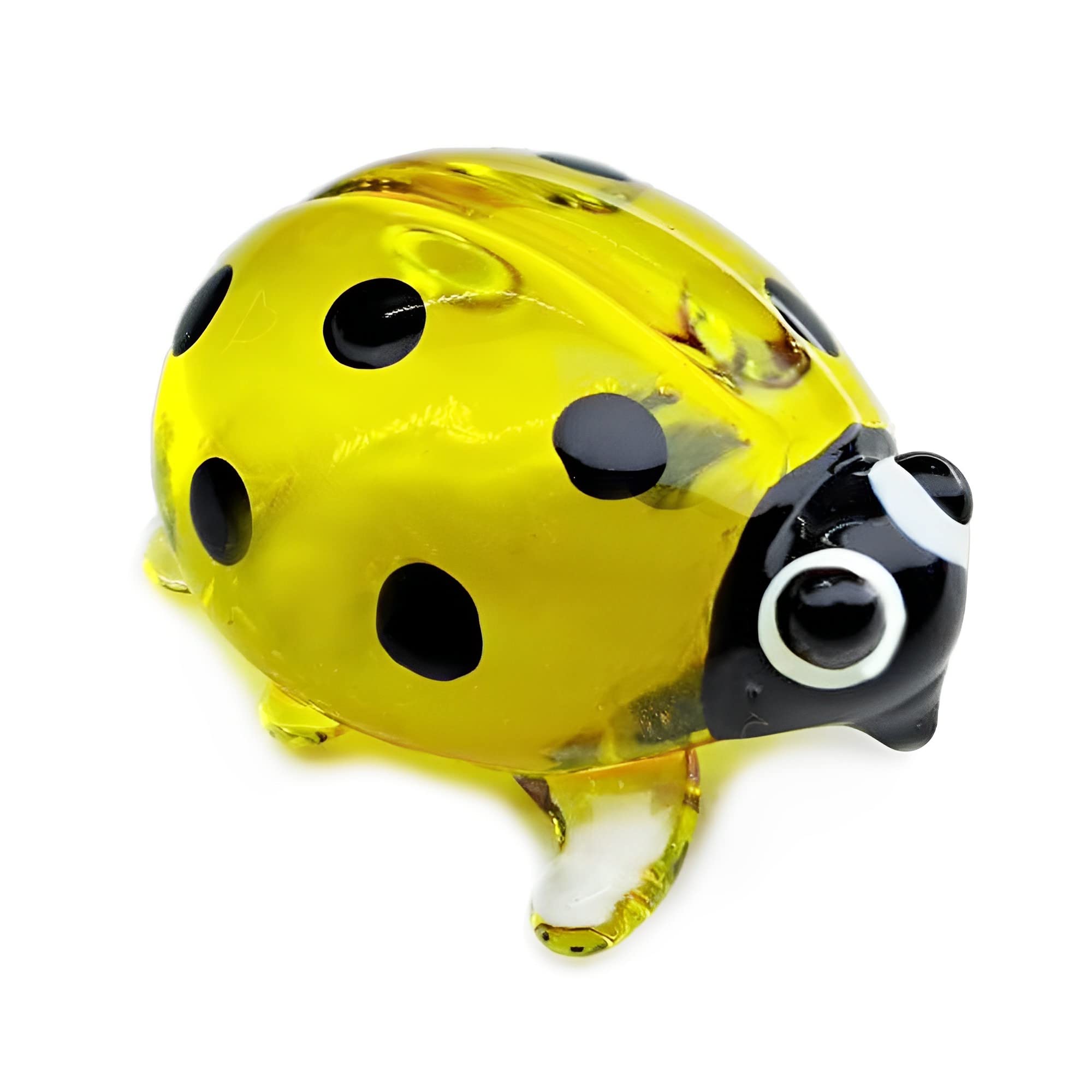 WitnyStore Pequeña figura de mariquita amarilla y negra de 1 pulgada en miniatura soplada a mano de vidrio pintado a mano Lady Bug