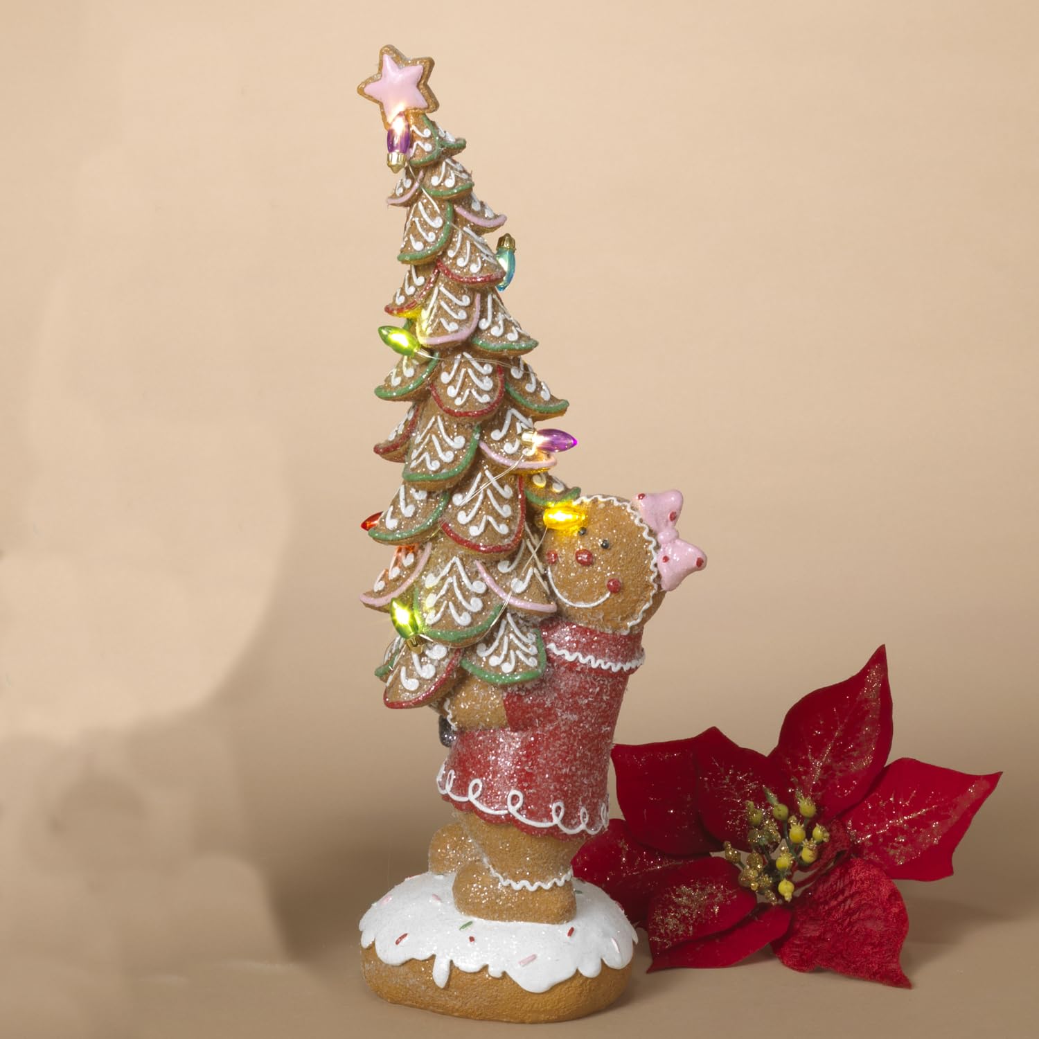 One Holiday Way Figura de mujer de jengibre iluminada con luz LED de 14.75 pulgadas que sostiene el árbol de Navidad – Figura deco