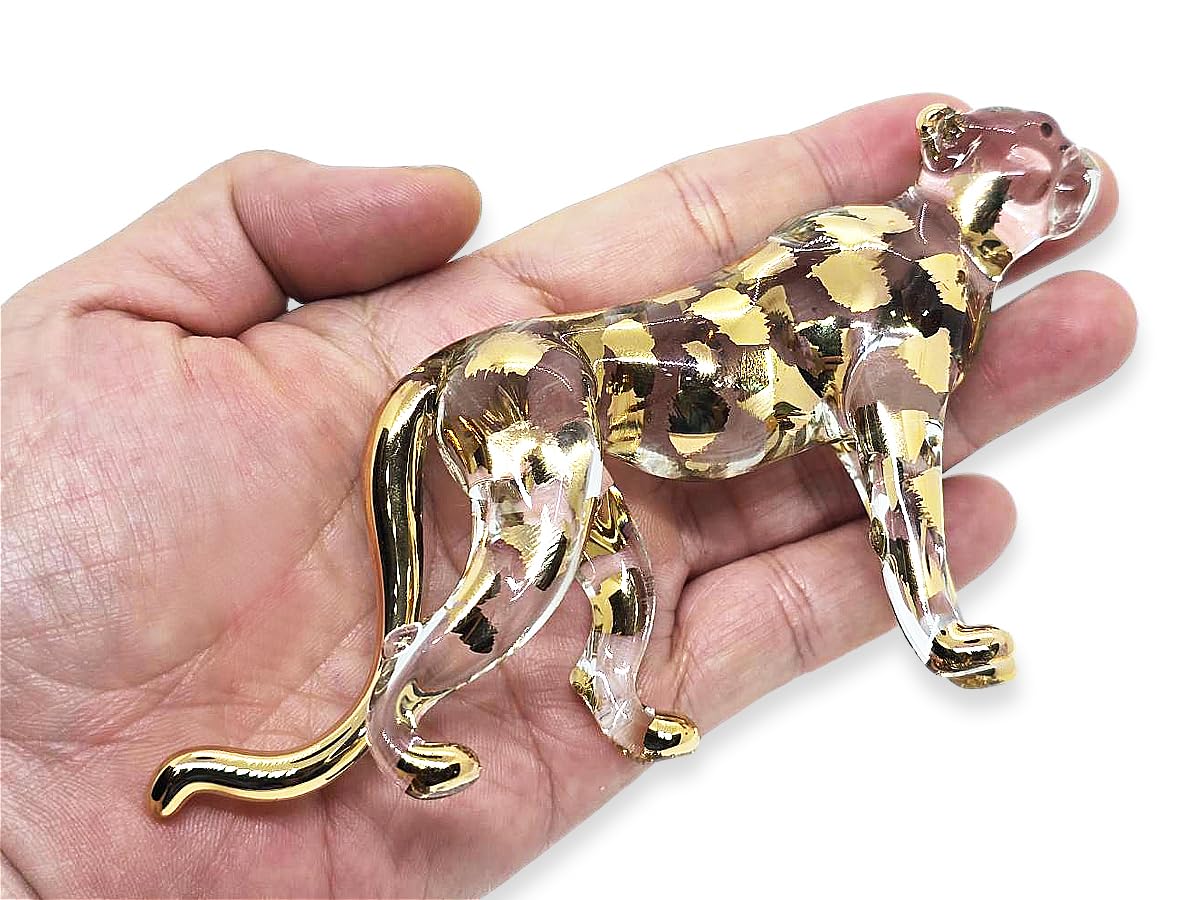 WitnyStore Pequeño soporte de oro transparente de 5 pulgadas, diseño de leopardo y guepardo, cristal pintado a mano, de pantera, f