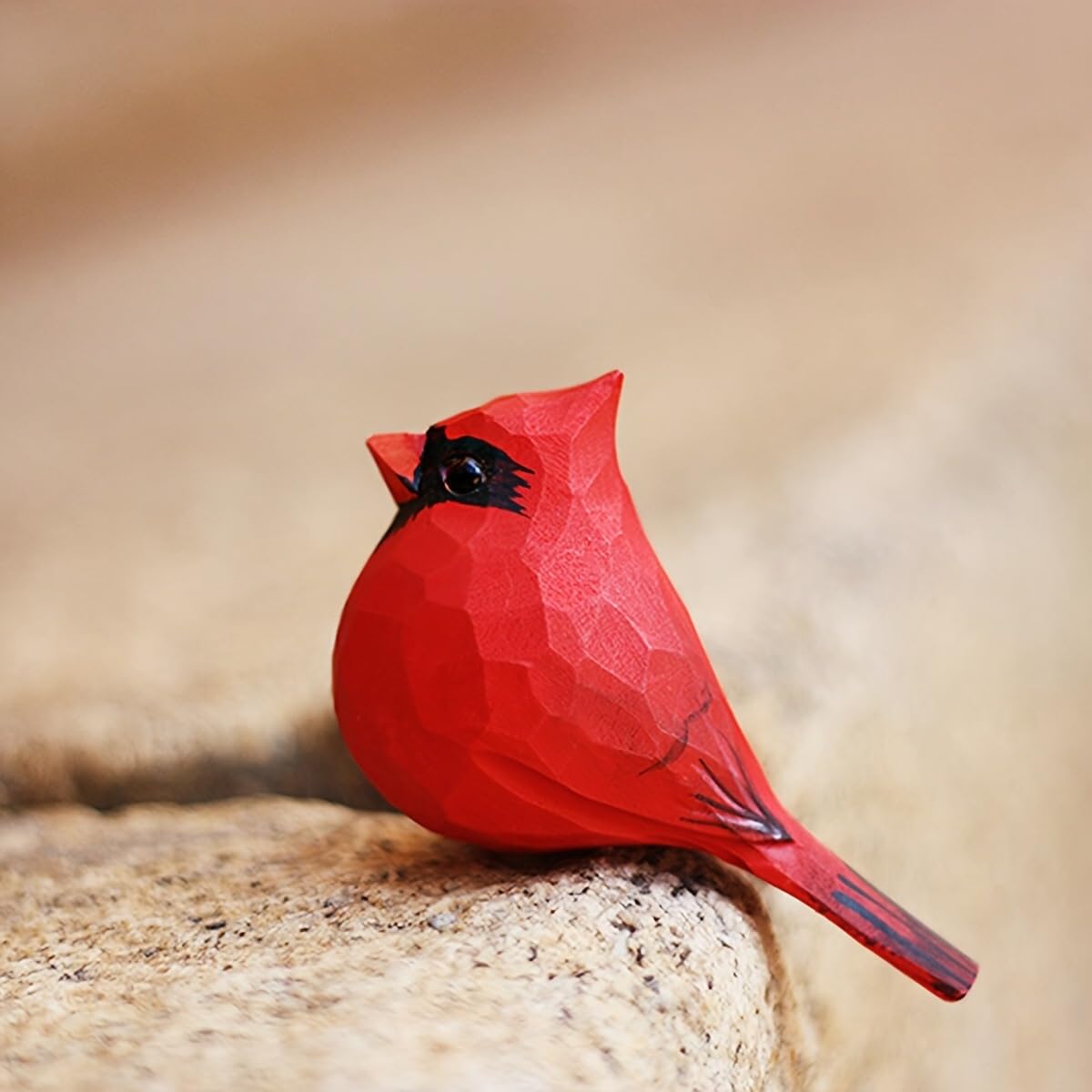 LWINGFLYER Pequeñas figuras de cardenales del norte de madera tallada, hechas a mano, juego de manualidades de pájaros de 3.9 pulg