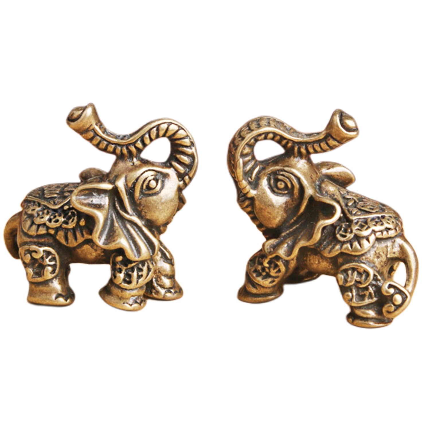 Paquete de 2 adornos de elefante de latón, decoración de escultura interior, mini animales, figura de elefante, riqueza, elefantes