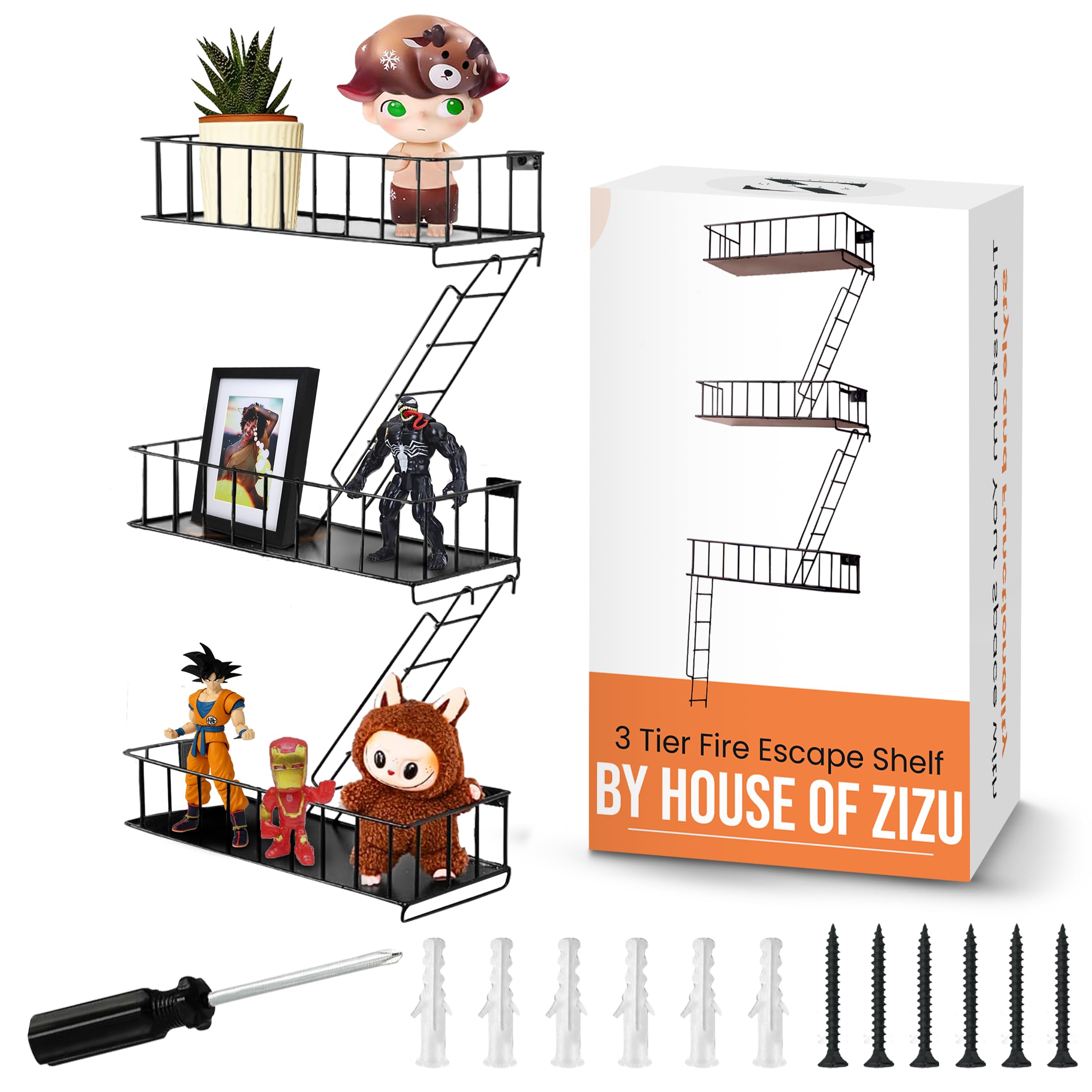Estante de pared de exhibición de figuras de acción, estantes de escape de incendios de 3 niveles con tornillos y destornillador,