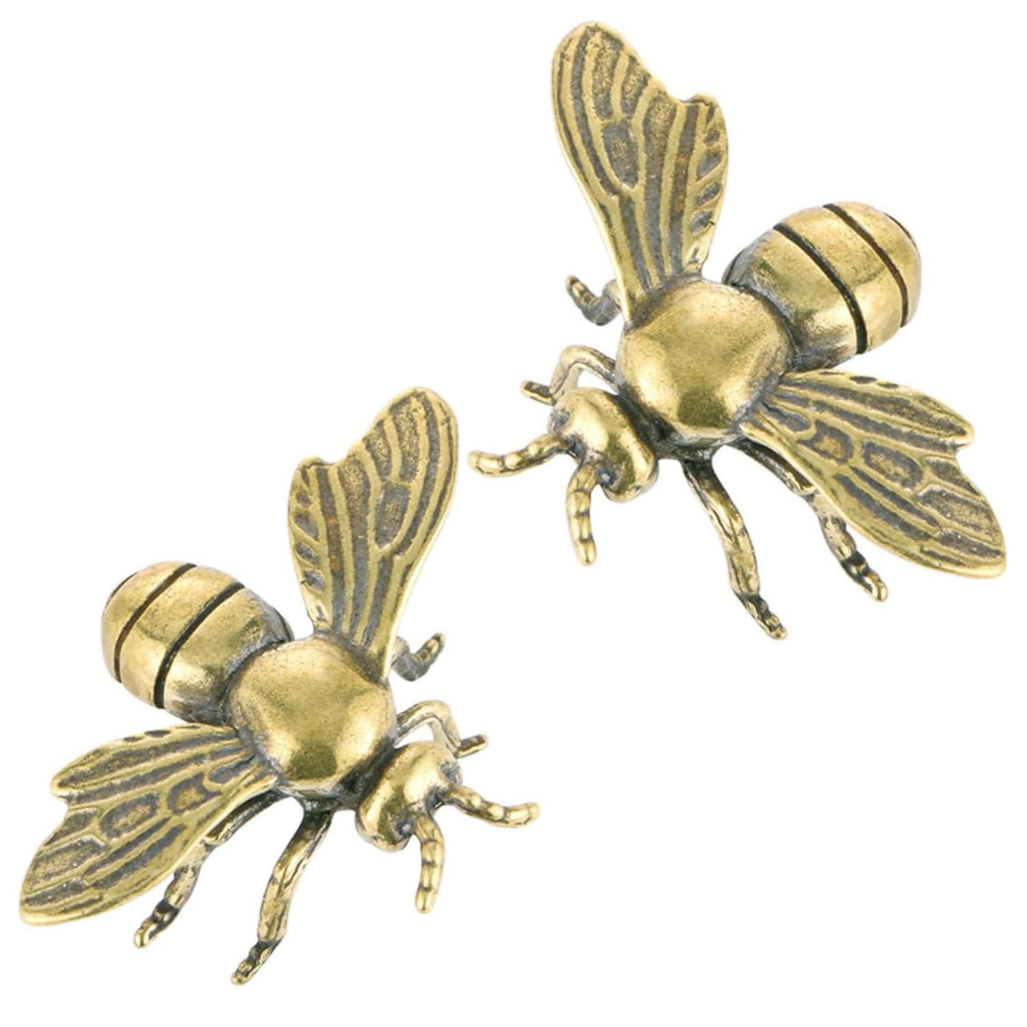 2 figuras de abeja doradas: estatuas de abeja de latón vintage, adorno de animal de latón para manualidades, pequeño adorno de esc