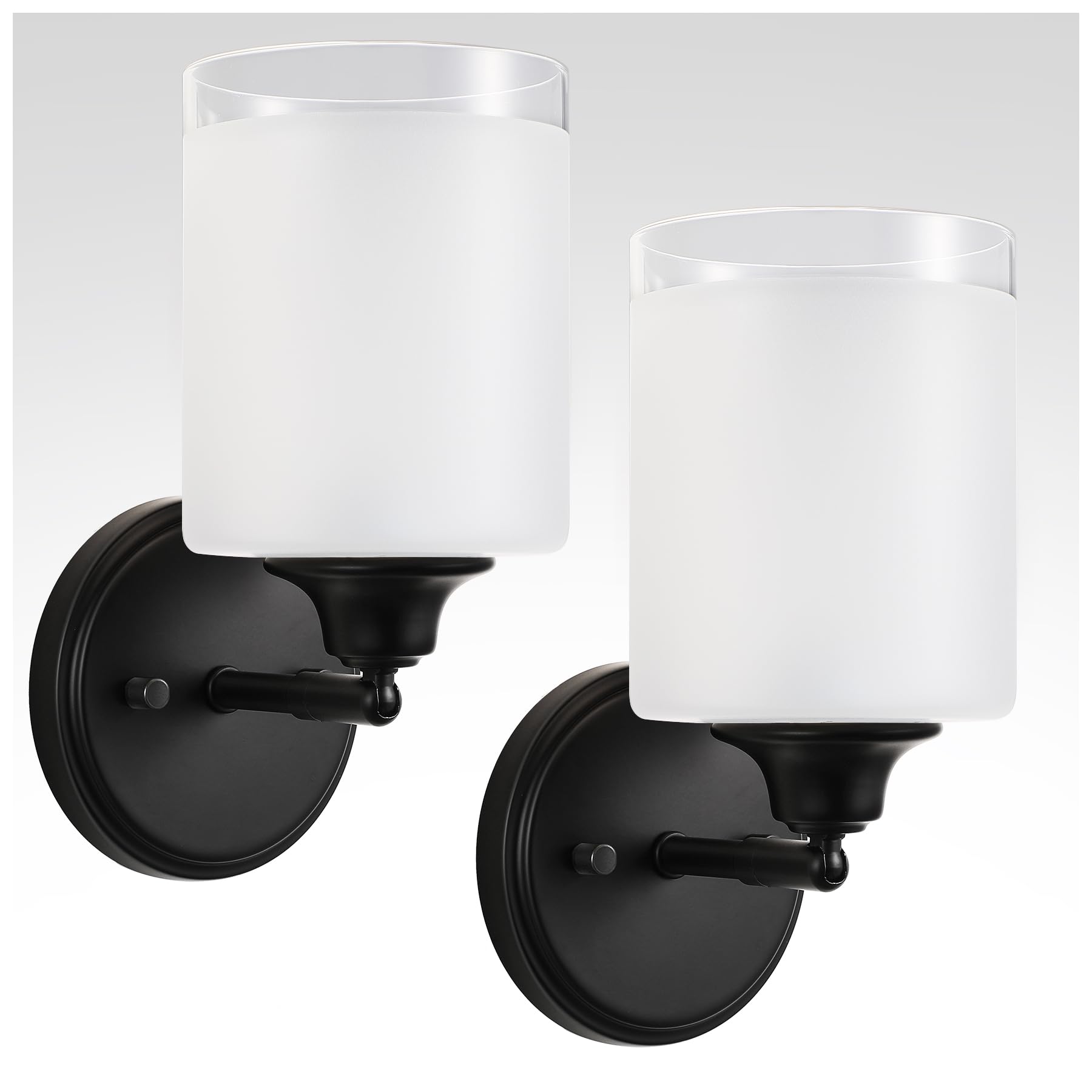Juego de 2 apliques de pared para baño con pantalla de vidrio esmerilado, modernas luces de pared negras mate, apliques de decorac