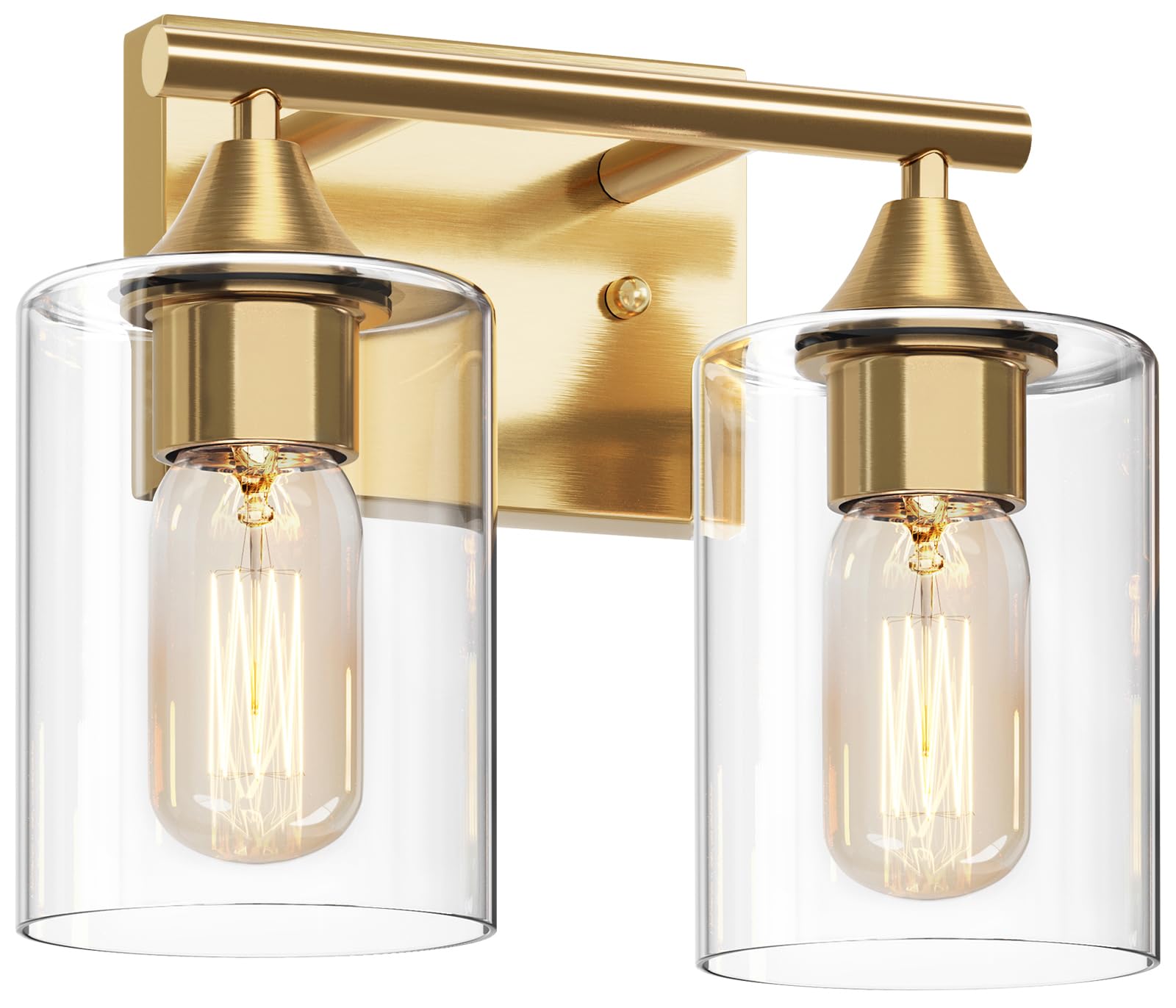 Luces de tocador doradas para baño, lámparas de baño de 2 luces, aplique de pared dorado de latón cepillado, lámpara de pared mode