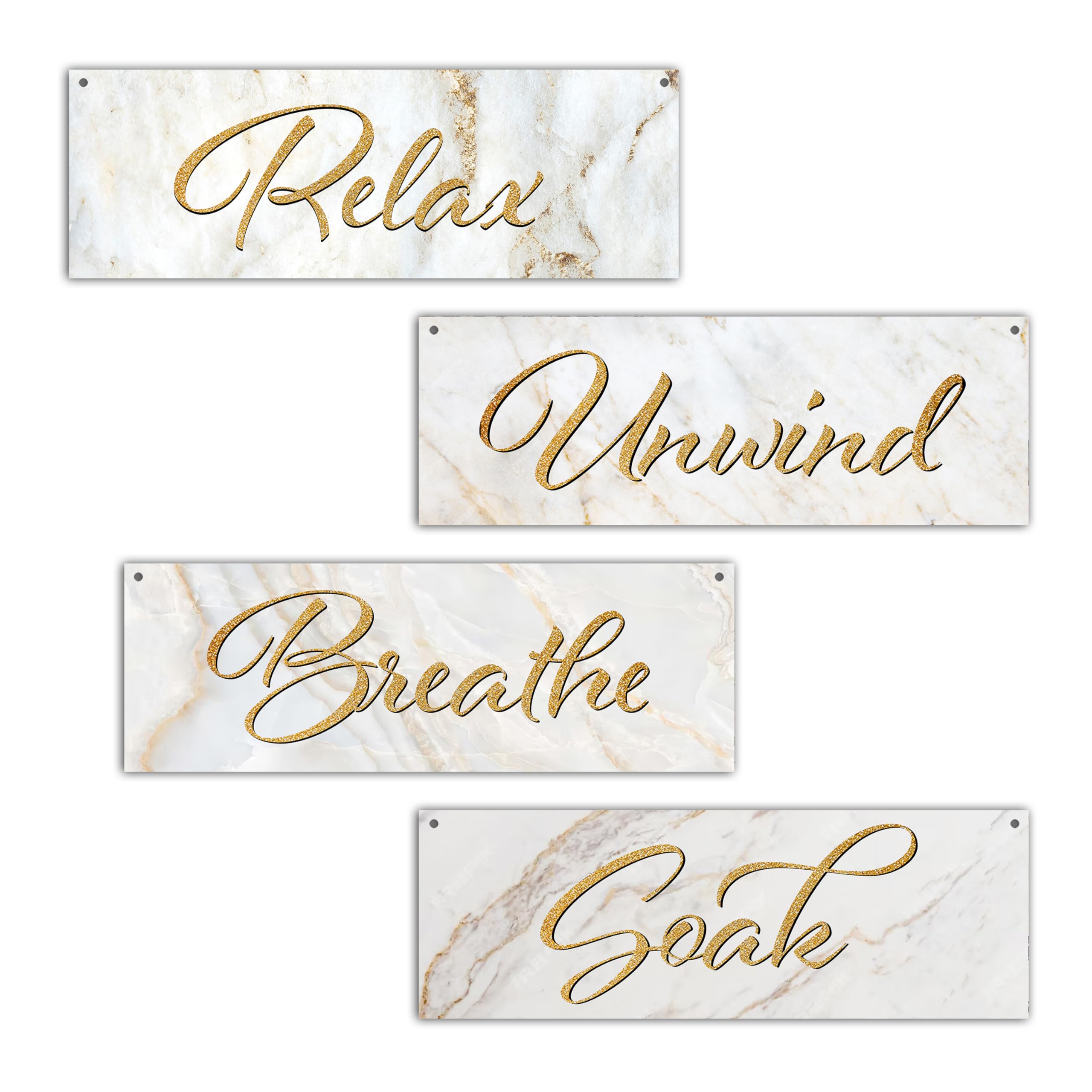 4 piezas de decoración de pared de estilo rústico de mármol, Soak Relax Unwind Breathe, letrero colgante de madera, arte de pared