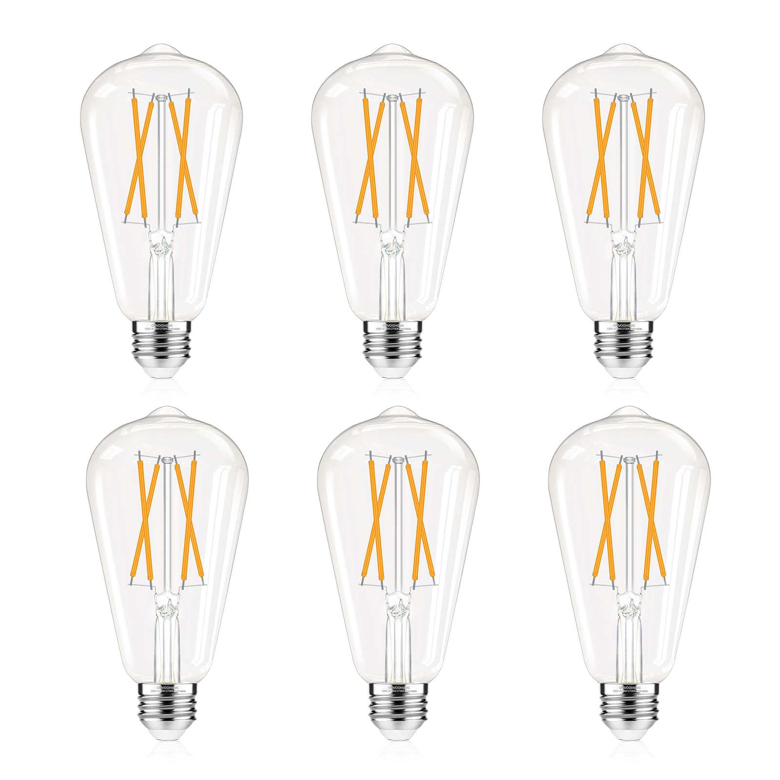 Bombillas Edison regulables, 2700 K blanco cálido, 6 W equivalente a bombilla LED E26 de 60 W, bombillas ST58 vintage, 600 LM, 90+