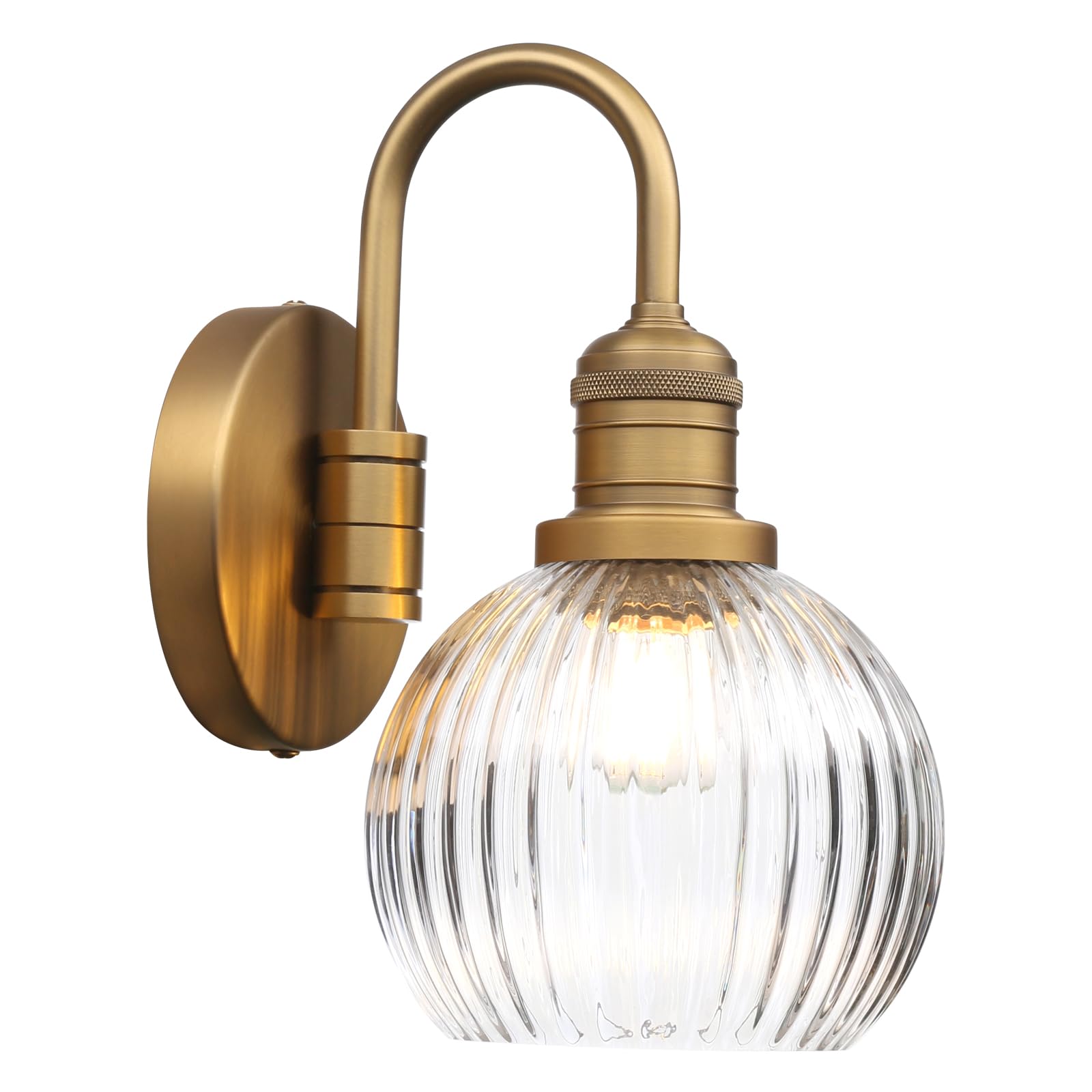 Yosoan Aplique de pared de baño vintage bohemio de latón envejecido con pantalla a rayas, 1 luz para interiores, con cable para mo