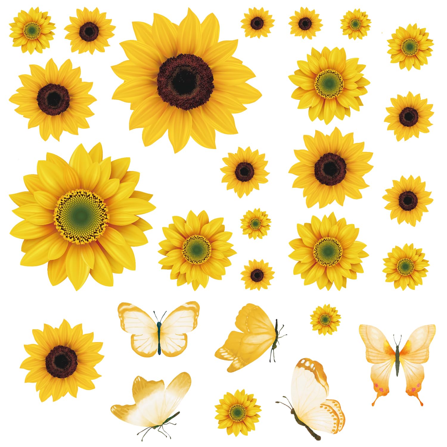 AOWDIAO Calcomanías de pared de girasol, decoraciones de girasol para dormitorio, cocina, baño, sala de estar