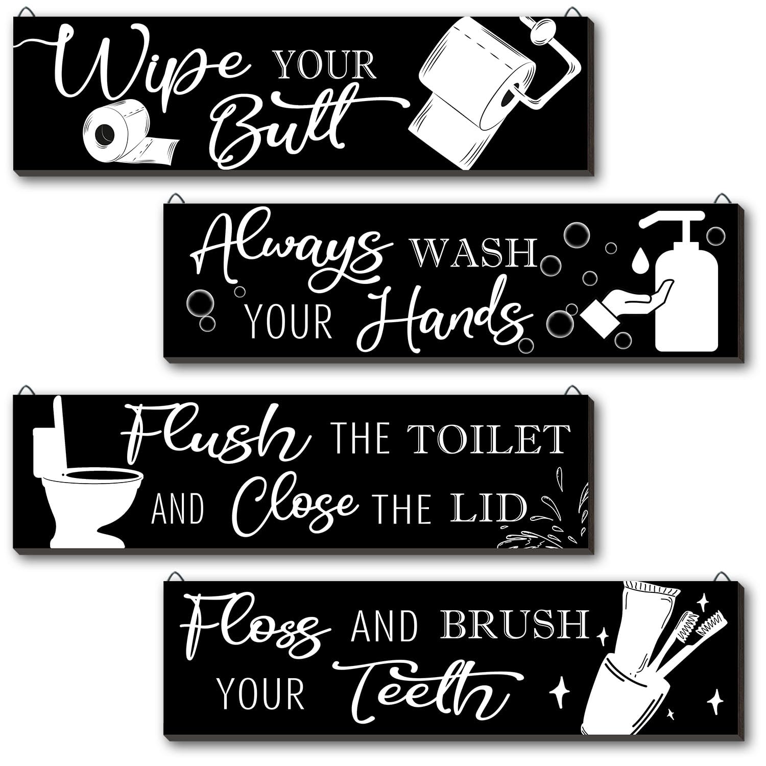 4 piezas divertidas de decoración de reglas de baño de color negro, decoración rústica para el hogar, decoración vintage para el h