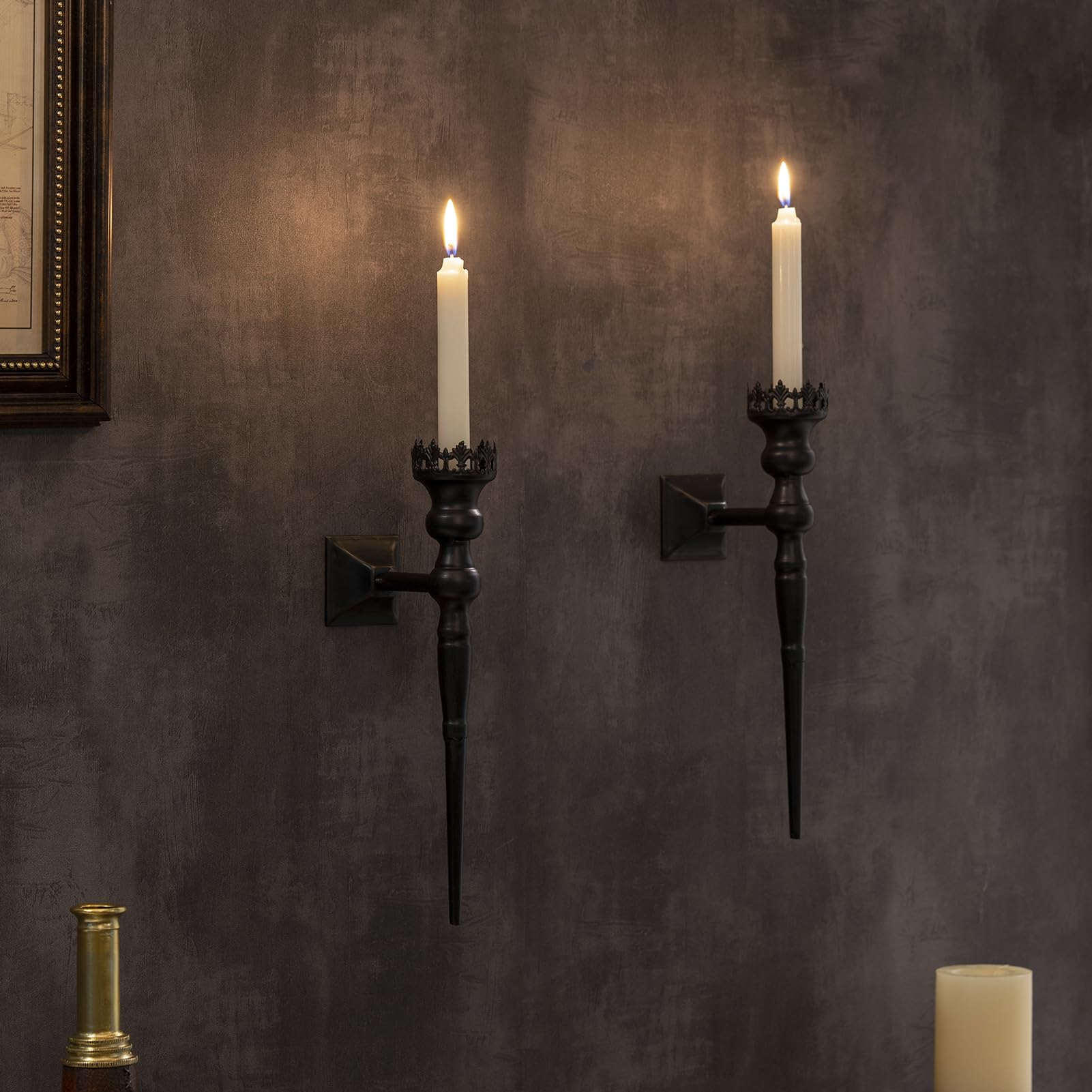 Candelabro de pared gótico para velas cónicas (juego de 2) corona de hierro negro y cetro, decoración de pared victoriana para sal