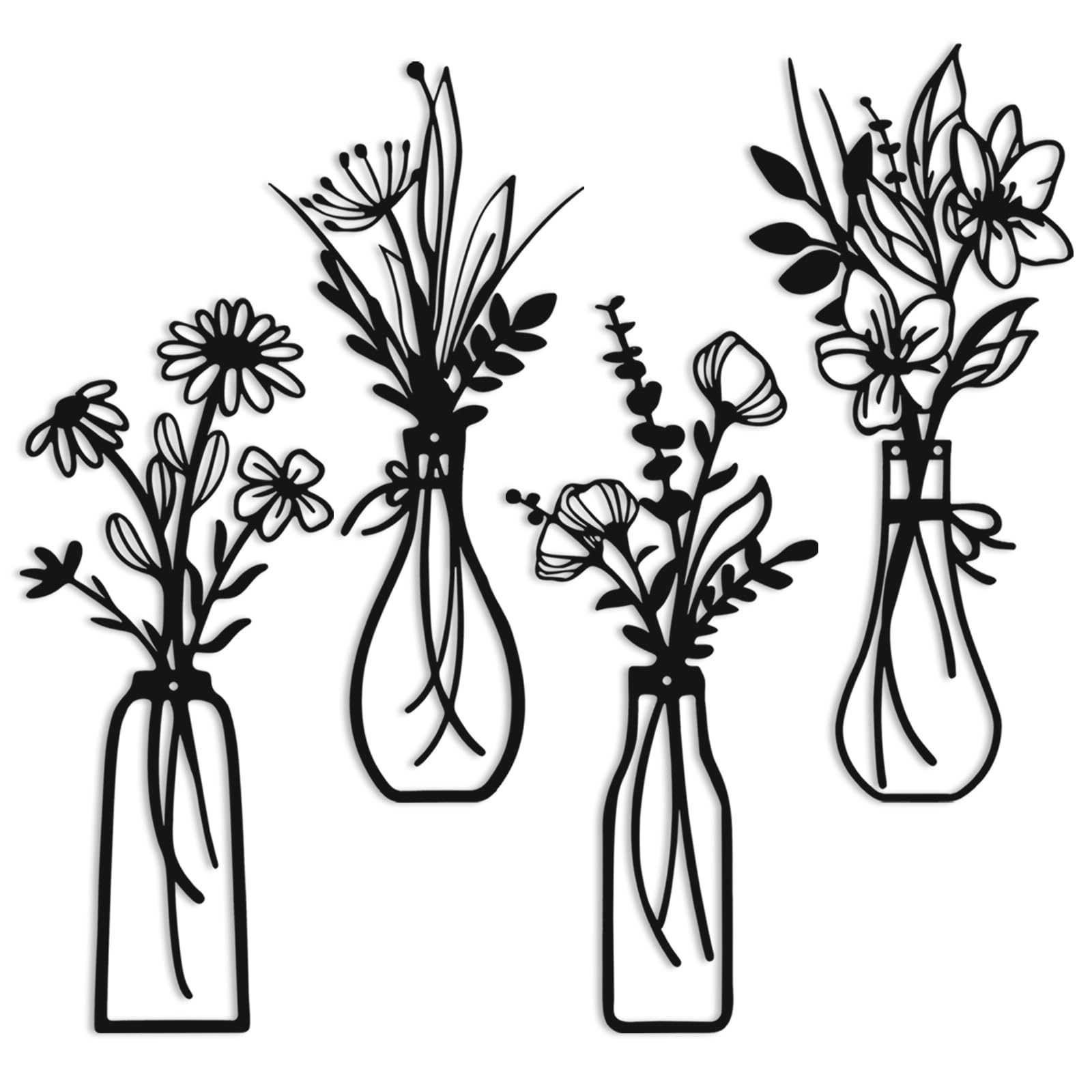 WYZCTTD 4 piezas de flores de metal para decoración de pared rústica de casa de campo para sala de estar, decoración minimalista d
