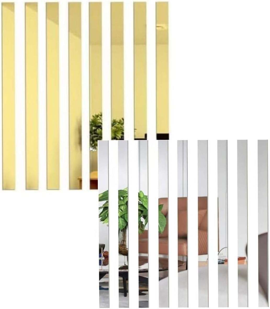 20 calcomanías de pared de espejo dorado y plateado, diseño a rayas, espejo, azulejos artísticos, autoadhesivas, línea de pared, b
