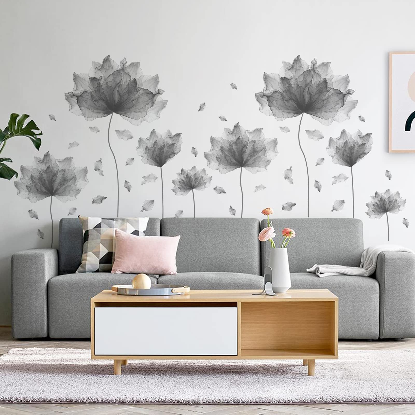 Calcomanías de pared de pétalos de flores enormes de 59.1 x 49.6 pulgadas, calcomanías de pared florales para sala de estar, calco