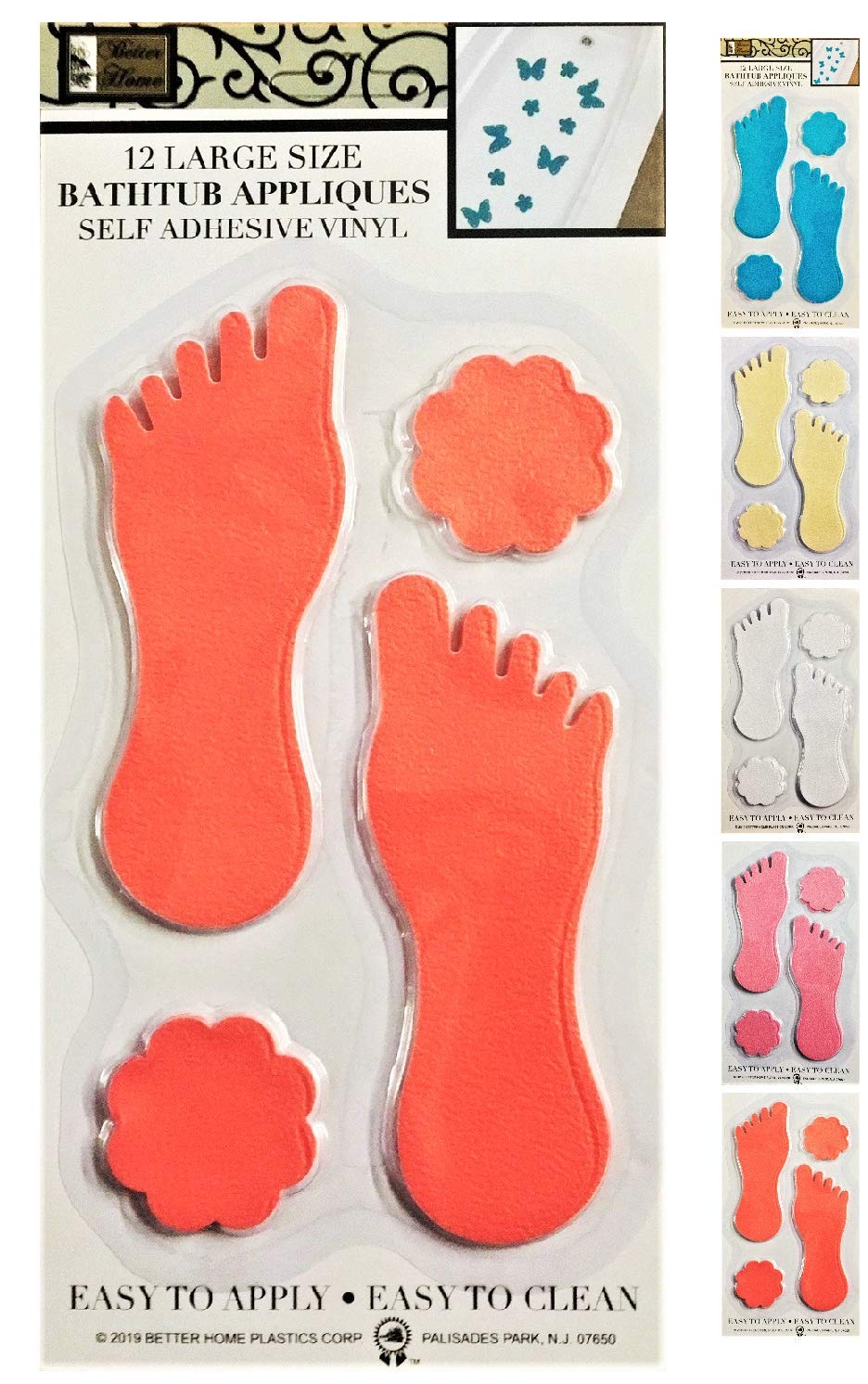 Better Home Apliques de bañera/ducha con forma de 12 pies, peldaños antideslizantes de seguridad, los últimos colores de decoració