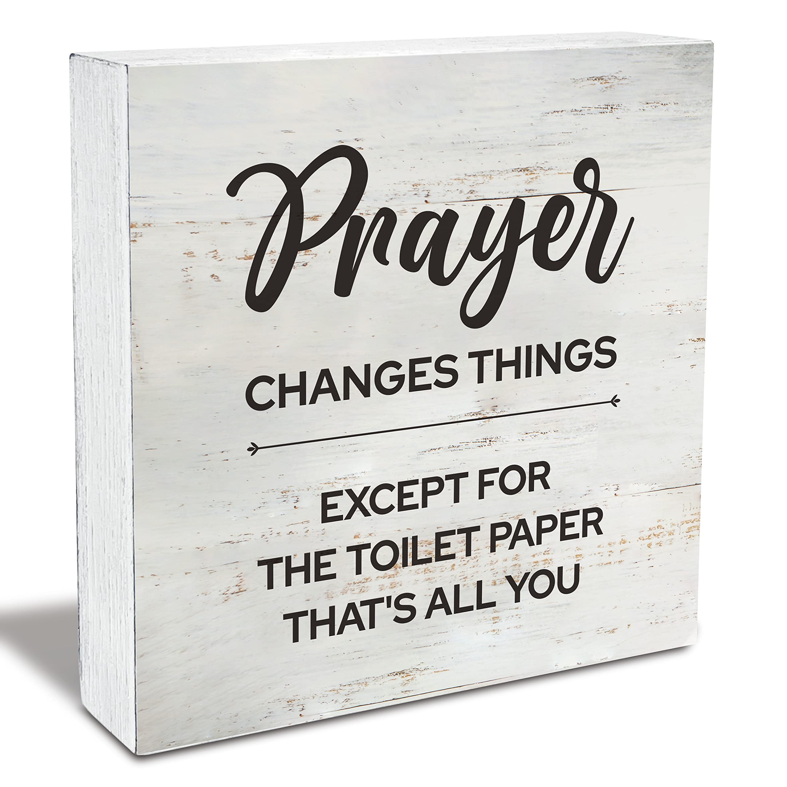 Papel higiénico de madera con cita de oración cambia cosas, letrero Rusitc Farmhouse Baño Baño Baño Estante Decoración de escritor