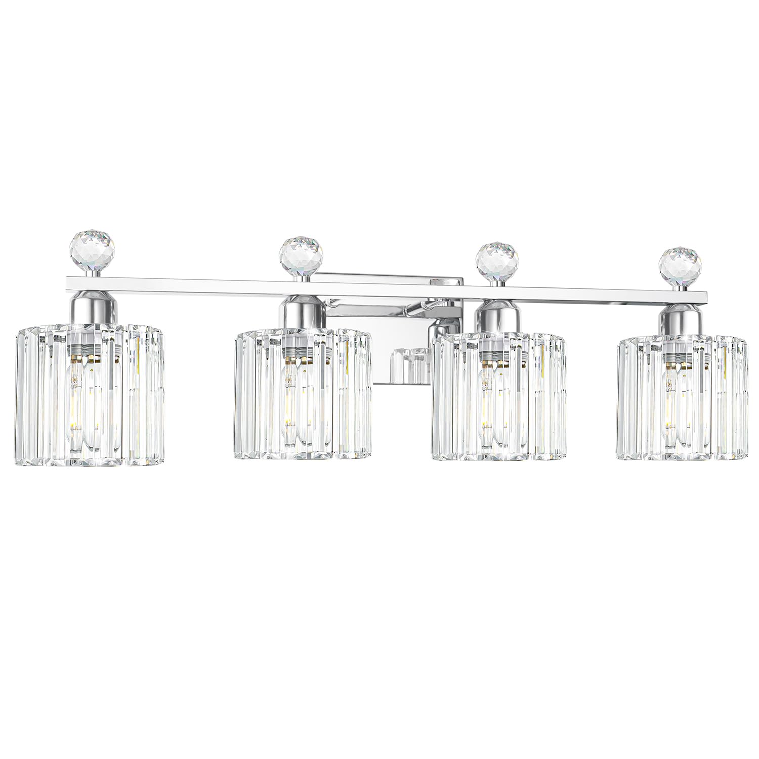 Moderna lámpara de tocador de baño de cristal, 4 luces, luces cromadas para baño, accesorio de pared de baño de cristal sobre espe