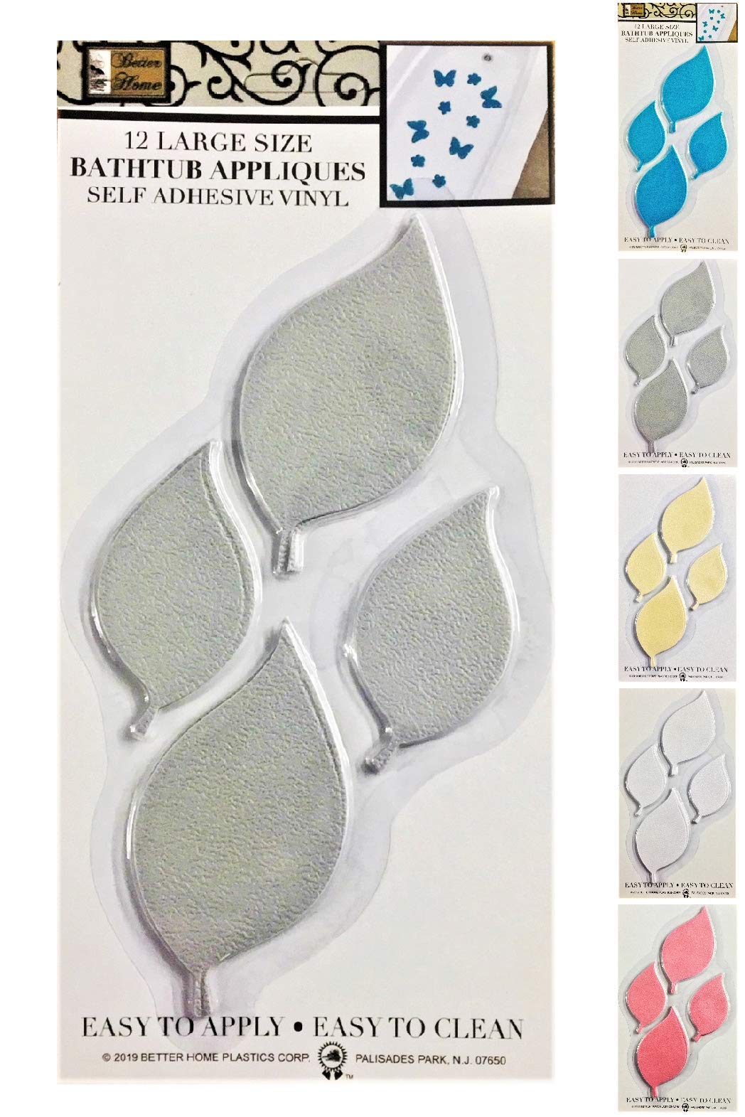 Better Home 12 hojas en forma de bañera/ducha apliques de seguridad antideslizantes, últimos colores de decoración (gris)