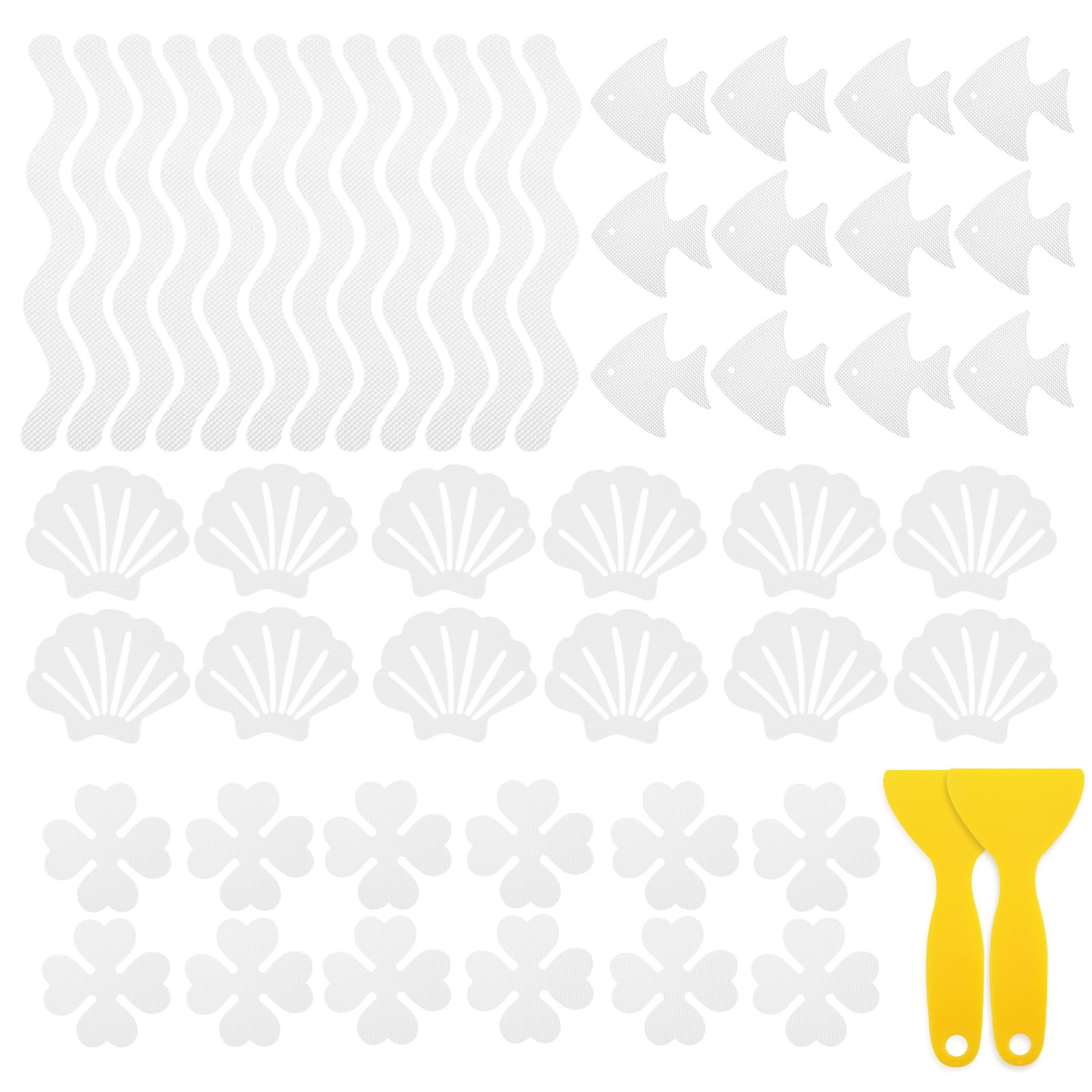 48Pcs Bathtub Stickers Non-Slip, FHDUSRYO Anti Slip Shower Stickers, Safety Shower Treads Strips with Scraper, Adhesive Decals App