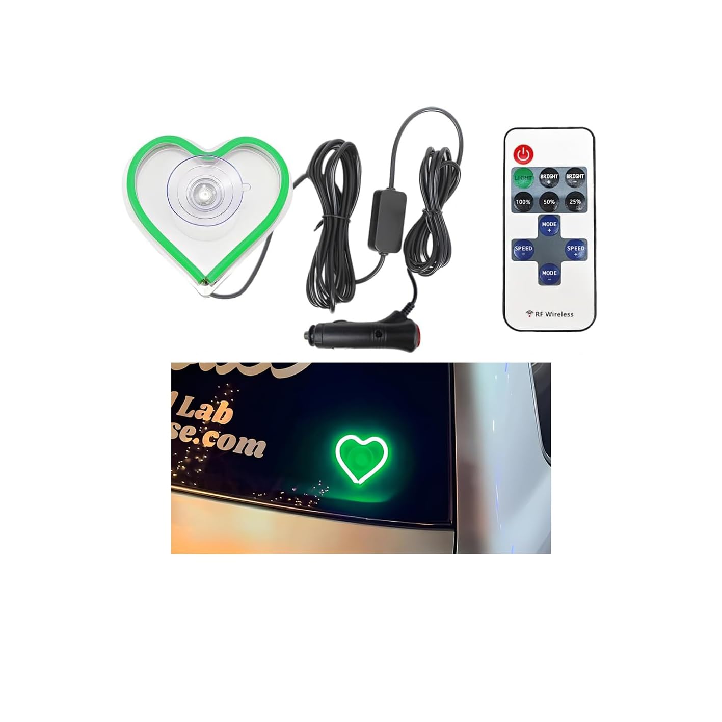 Luz ambiental LED para automóvil, diseño de corazón de amor, iluminación de neón para vehículo con control remoto para triángulo o