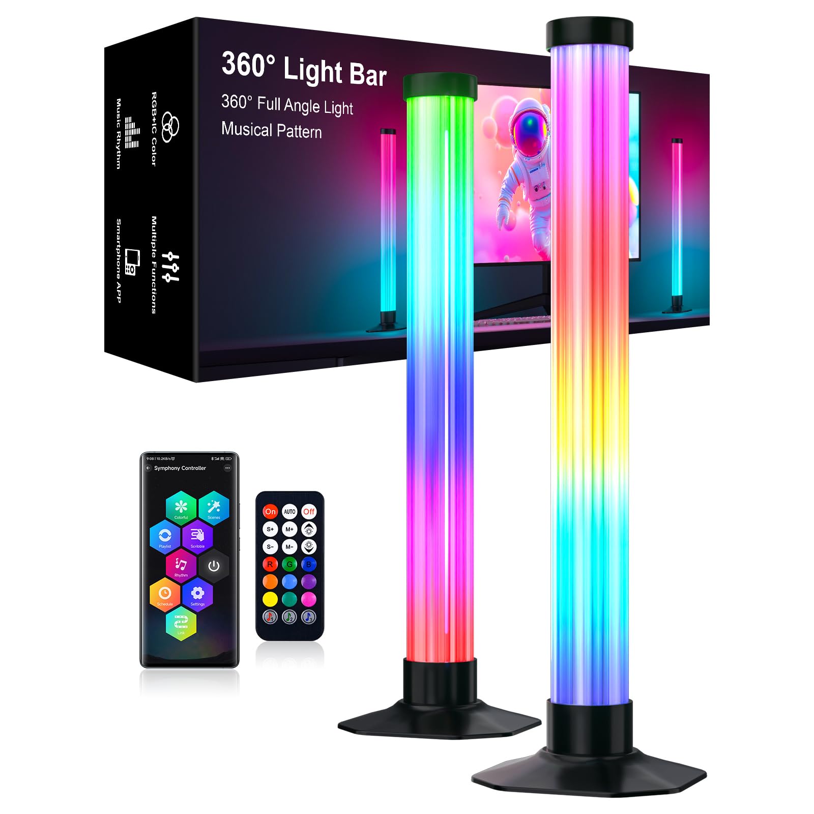 Barra de luz RGB, retroiluminación de TV de 360 grados que emite luz USB, conexión para juegos, aplicación y control remoto, sincr