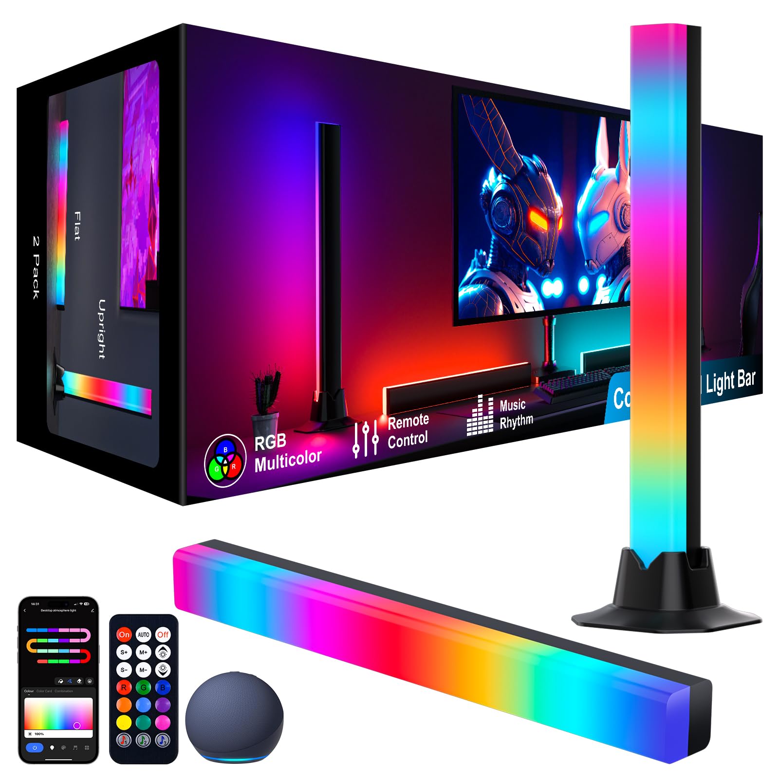 Barra de luz RGB, barra de luz LED inteligente que funciona con Alexa, sincronización de música, aplicación y control remoto, retr