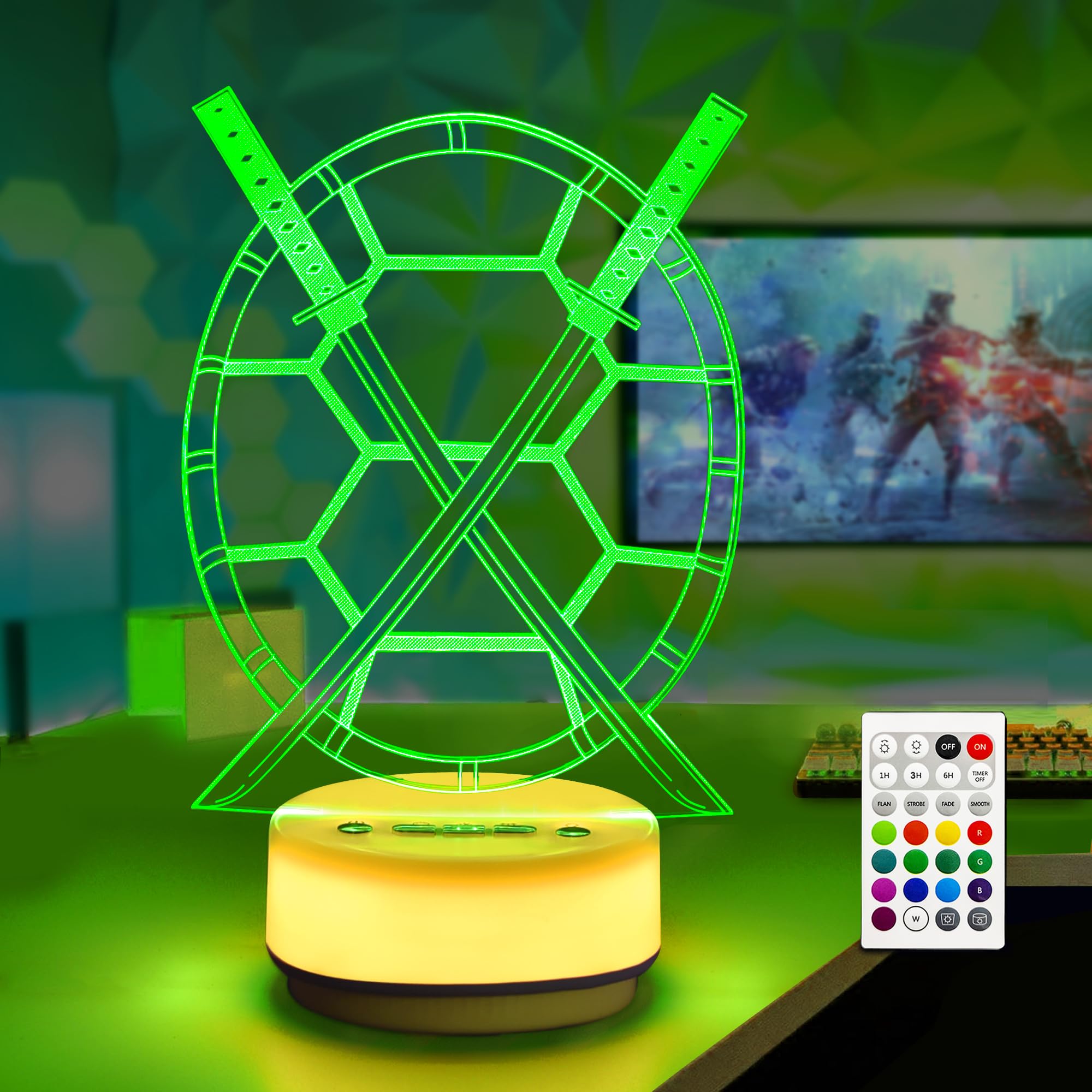 Samurai – Espada de luz nocturna, tortuga mágica, luz decorativa para habitación de niños, arte decorativo de 14 colores, luz ambi